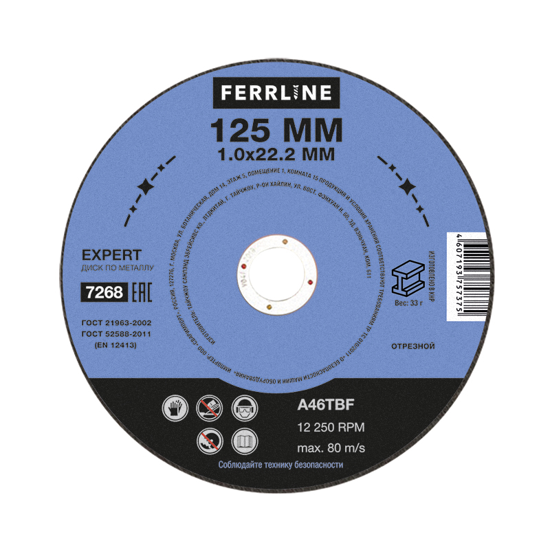 Круг отрезной по нержавеющей стали FTL E-Nox 125 х 1,2 х 22,2 мм A54TBF в Краснодаре