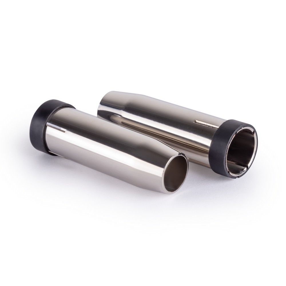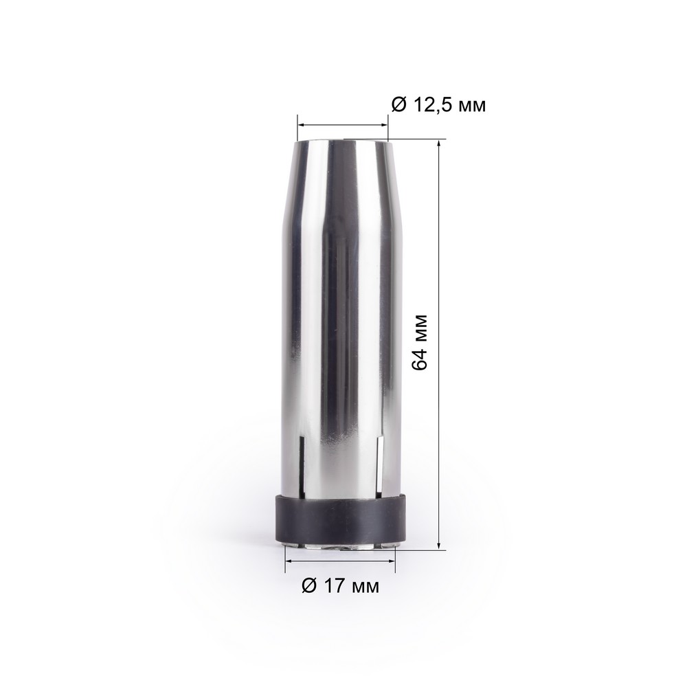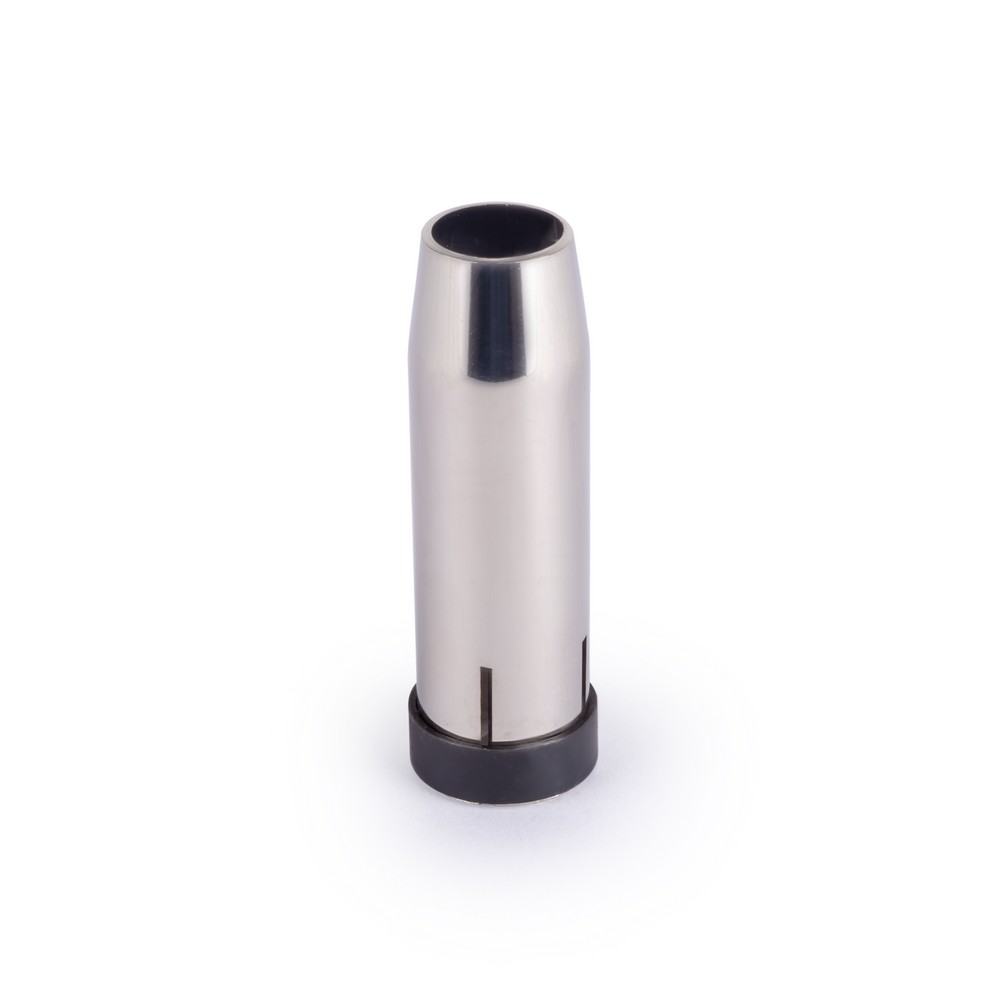 Цилиндрическое сопло MIG-24 с внутренним диаметром выходного отверстия 12,5 мм является одной из основных частей сварочной горелки. Именно при помощи сопла к месту сварки подается защитный газ, тем самым исключая риск попадания воздуха в ванну расплавленного металла. Сопло MIG-24 относится к расходным материалам сварочной горелки. Несмотря на свою высокую прочность, они могут выходить из строя из-за загрязненности, в результате налипания брызг расплавленного металла на поверхность сопла. Для продления срока службы изделия рекомендуется использовать специальный сварочный спрей.