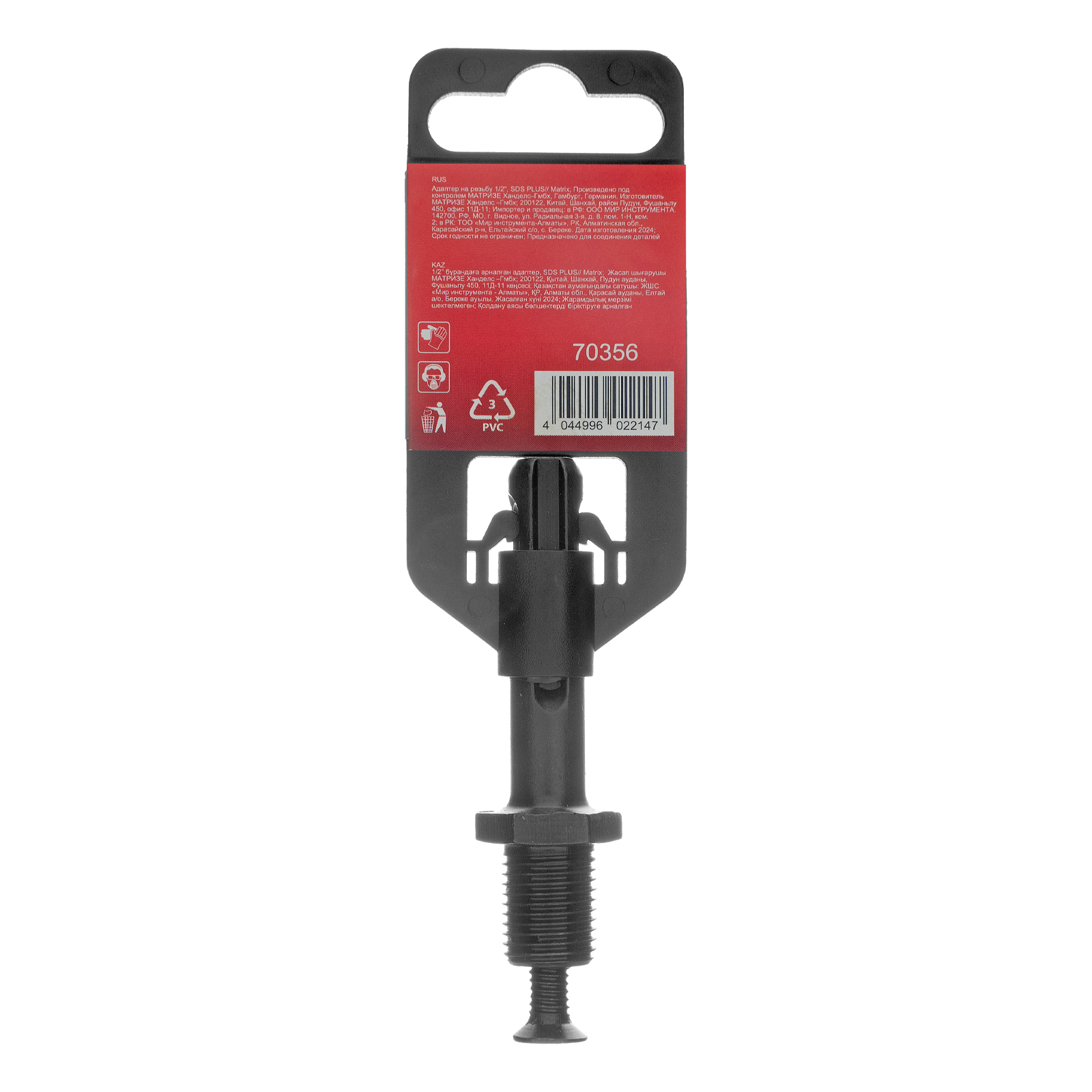 Адаптер SDS PLUS на резьбу 1/2" Matrix 70356 служит для установки на перфоратор быстрозажимных и ключевых патронов с резьбовым креплением. Позволяет применять сверла по металлу или бетону с цилиндрическим хвостовиком, используя перфоратор в режиме дрели.