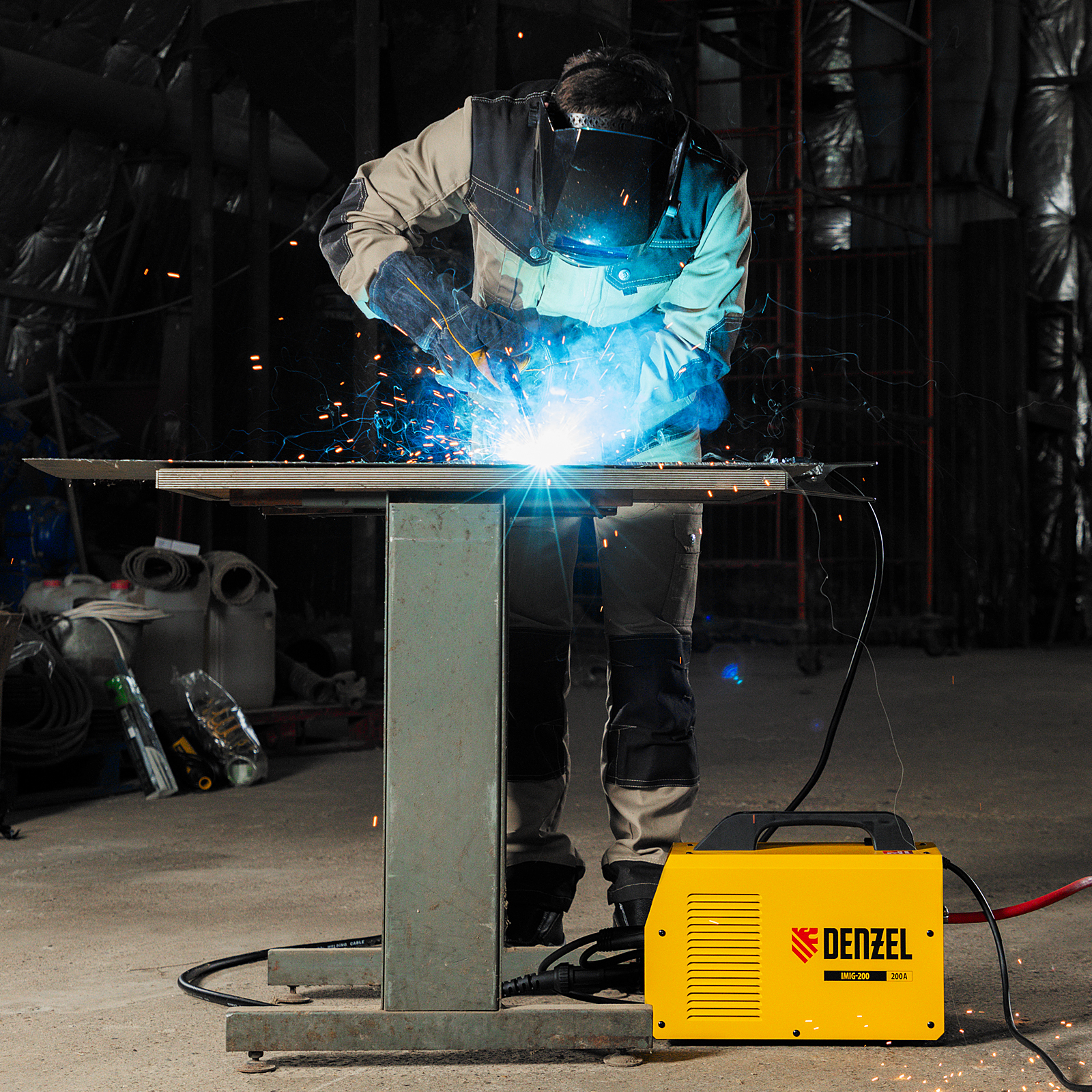 Аппарат инвертор. полуавтомат. cварки IMIG-200, 200 А, ПВ 60%, катушка 5 кг Denzel в Краснодаре