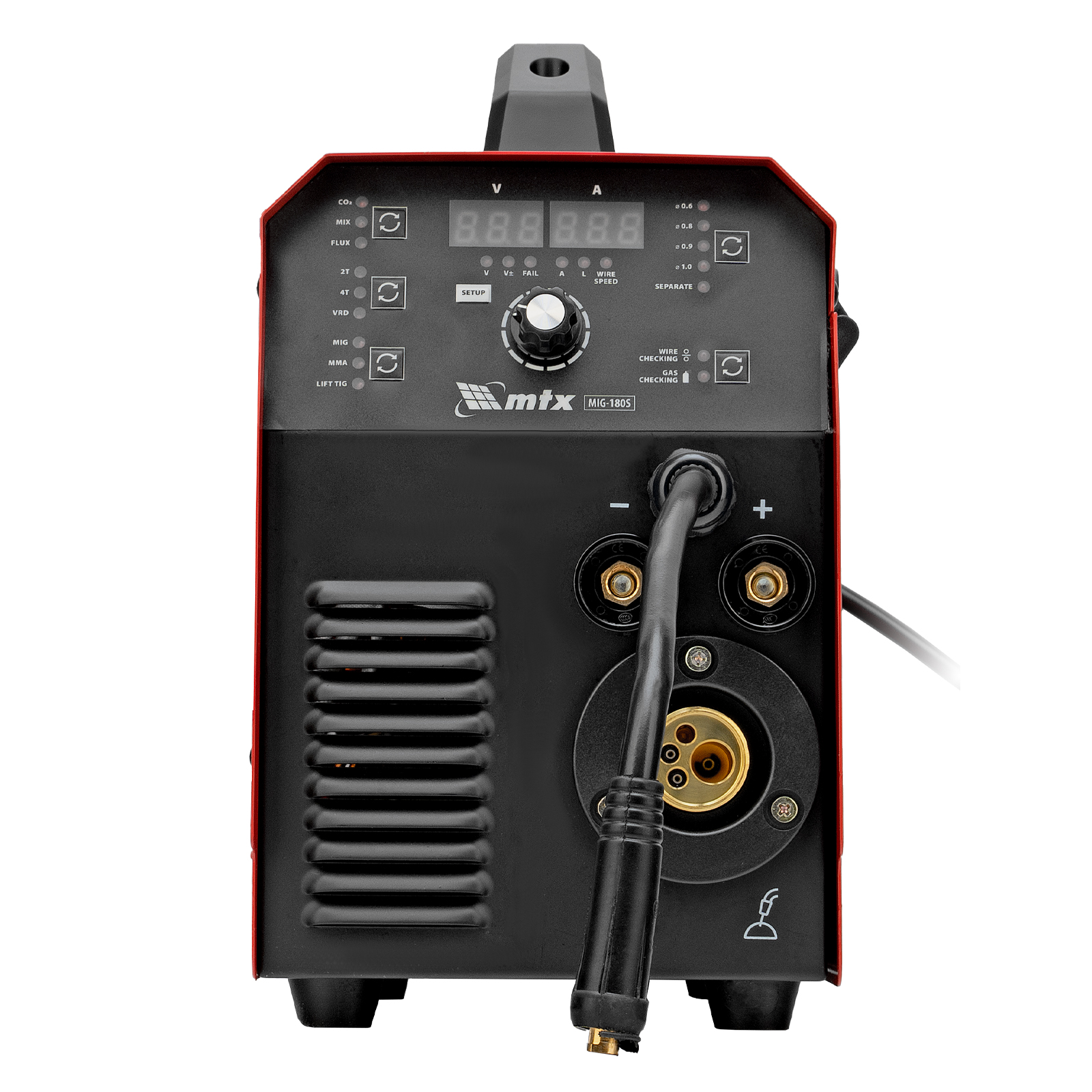 Инверторный аппарат полуавтоматической сварки MTX MIG-180S 94302, предназначенный для сварки на максимальном токе до 180 А, имеет продолжительность включения 60% и совместим с катушками весом до 5 кг. Используется для работы со сталями и черными металлами. Сварочный аппарат изготовлен с использованием передовой технологии IGBT, позволяющей получать стабильный сварочный ток на выходе. Аппарат имеет высокий КПД при низком энергопотреблении, способен работать при пониженном до 180 В напряжении.