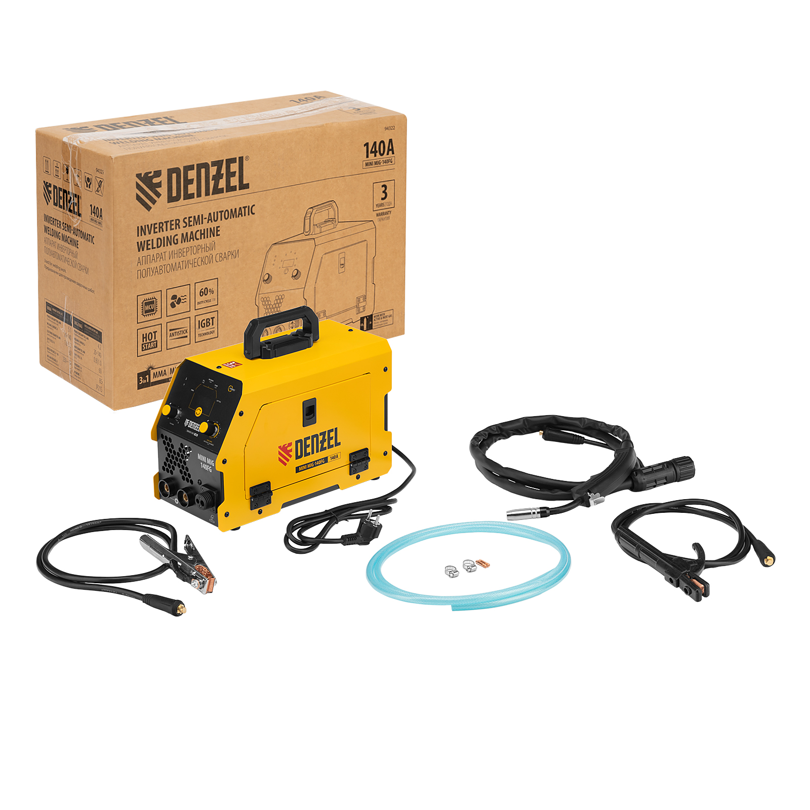 Аппарат инвертор. полуавтомат. сварки Mini MIG-140FG, 140 А, ПВ 60% Denzel в Краснодаре
