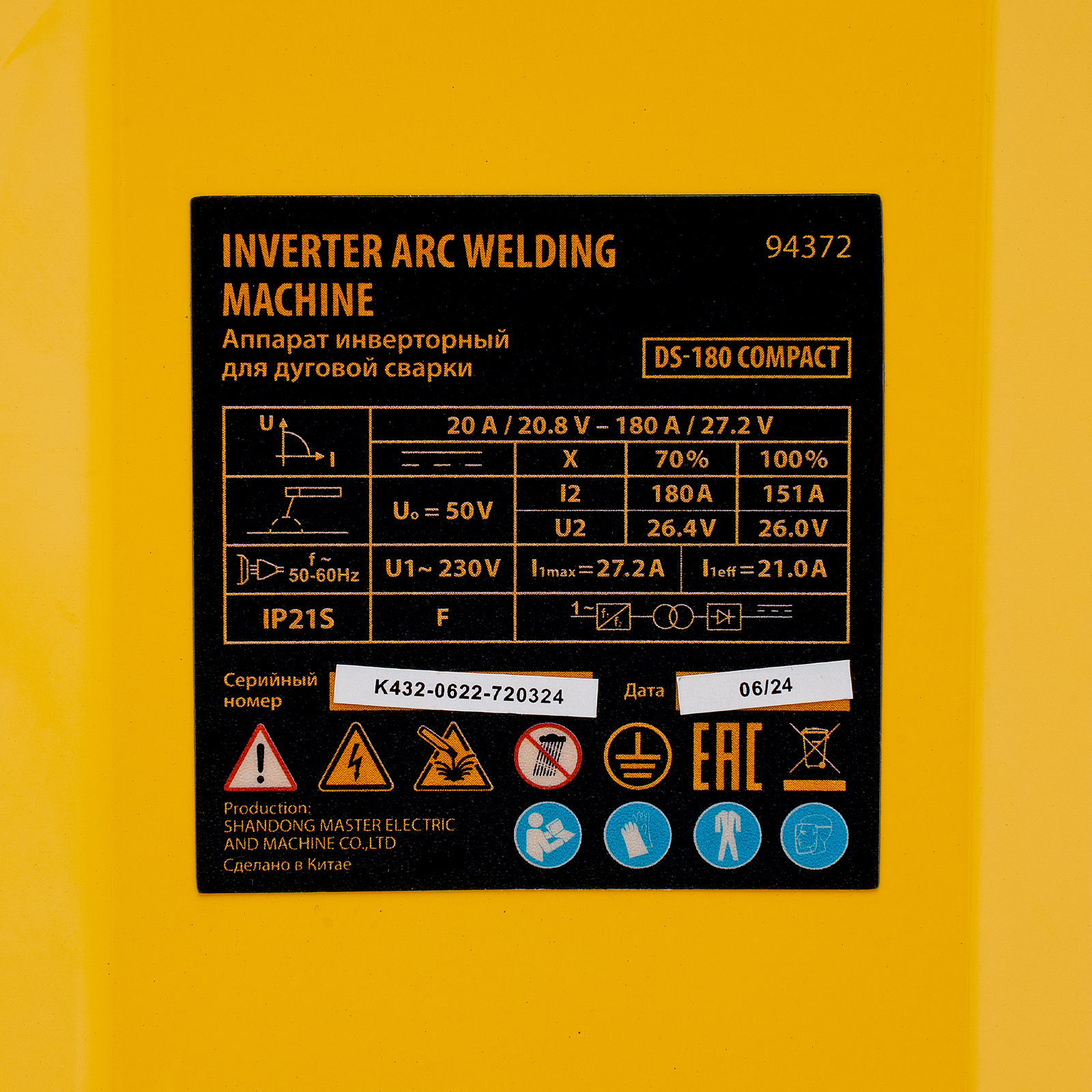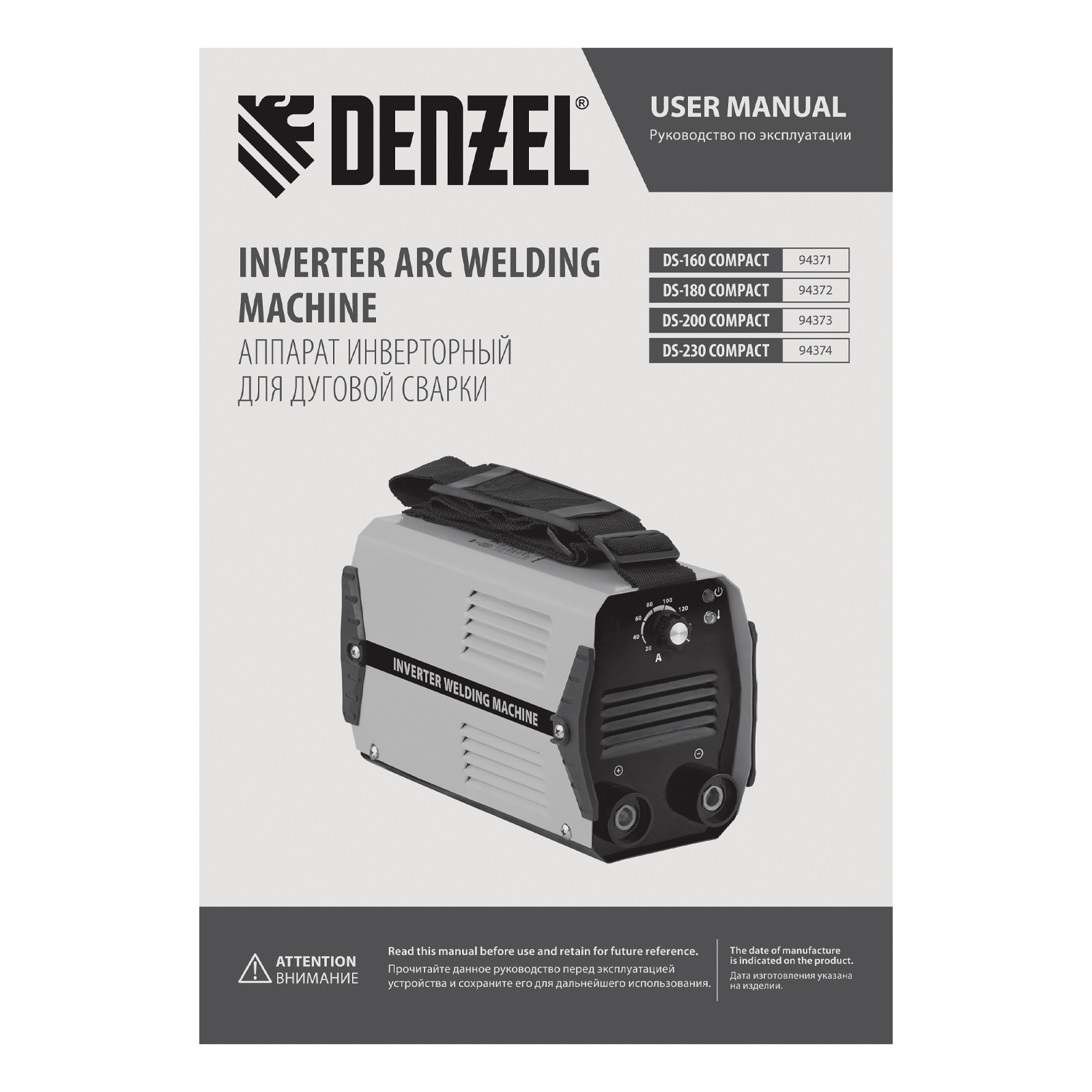 Аппарат инверторный дуговой сварки DS-180 Compact, 180 А, ПВ 70%, диаметр электрода 1.6-4 мм Denzel в Краснодаре
