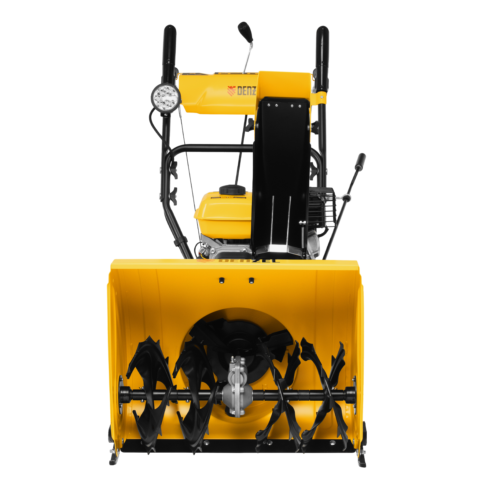 - Возможность увеличения ширины захвата до 710 мм — на кожух шнека можно установить подрезатели Denzel 97102 (не входят в комплект поставки).