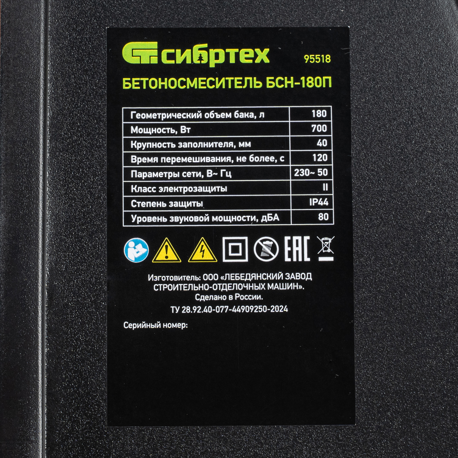 Бетоносмеситель БСН-180П, мощность 700 Вт, полиамидный венец Сибртех в Краснодаре