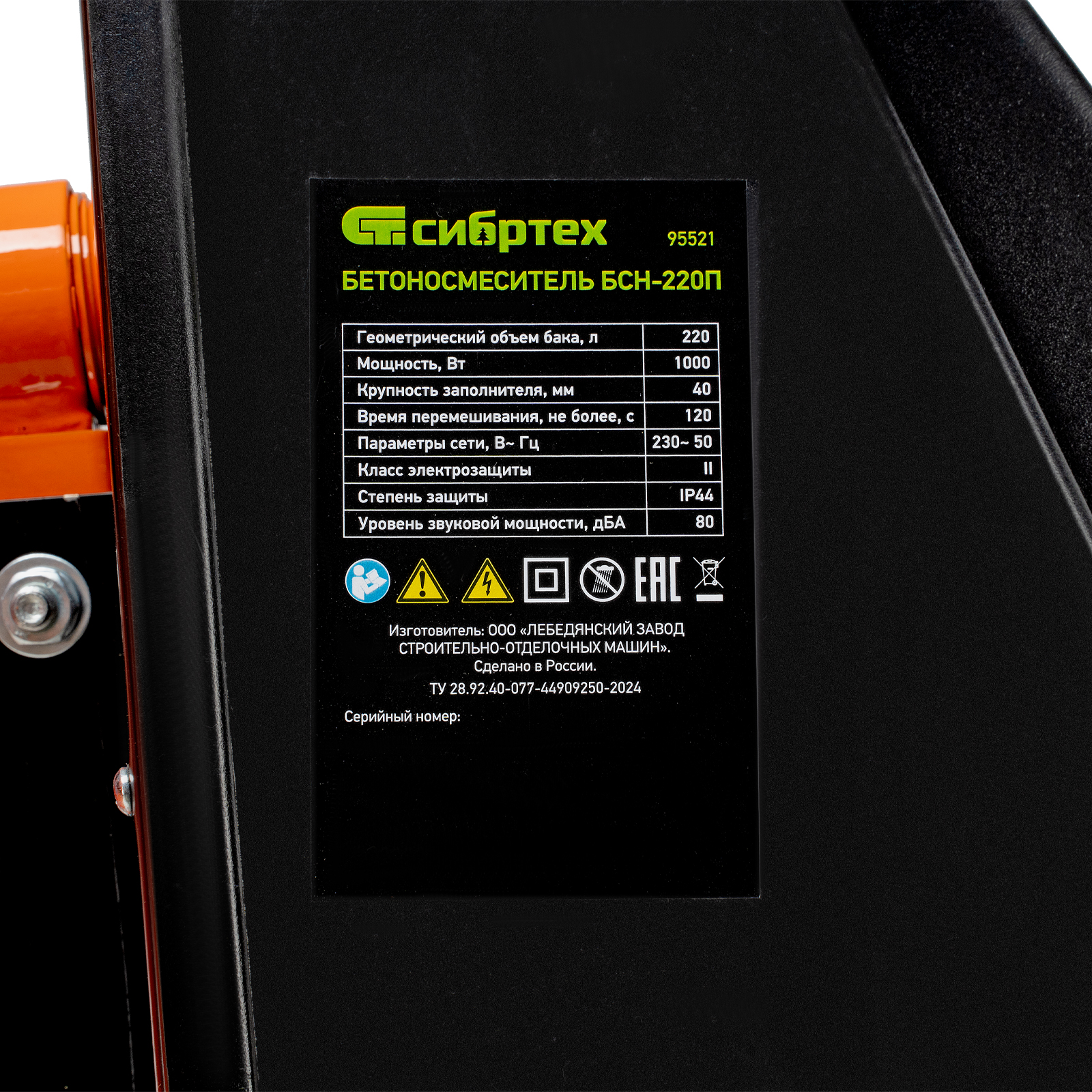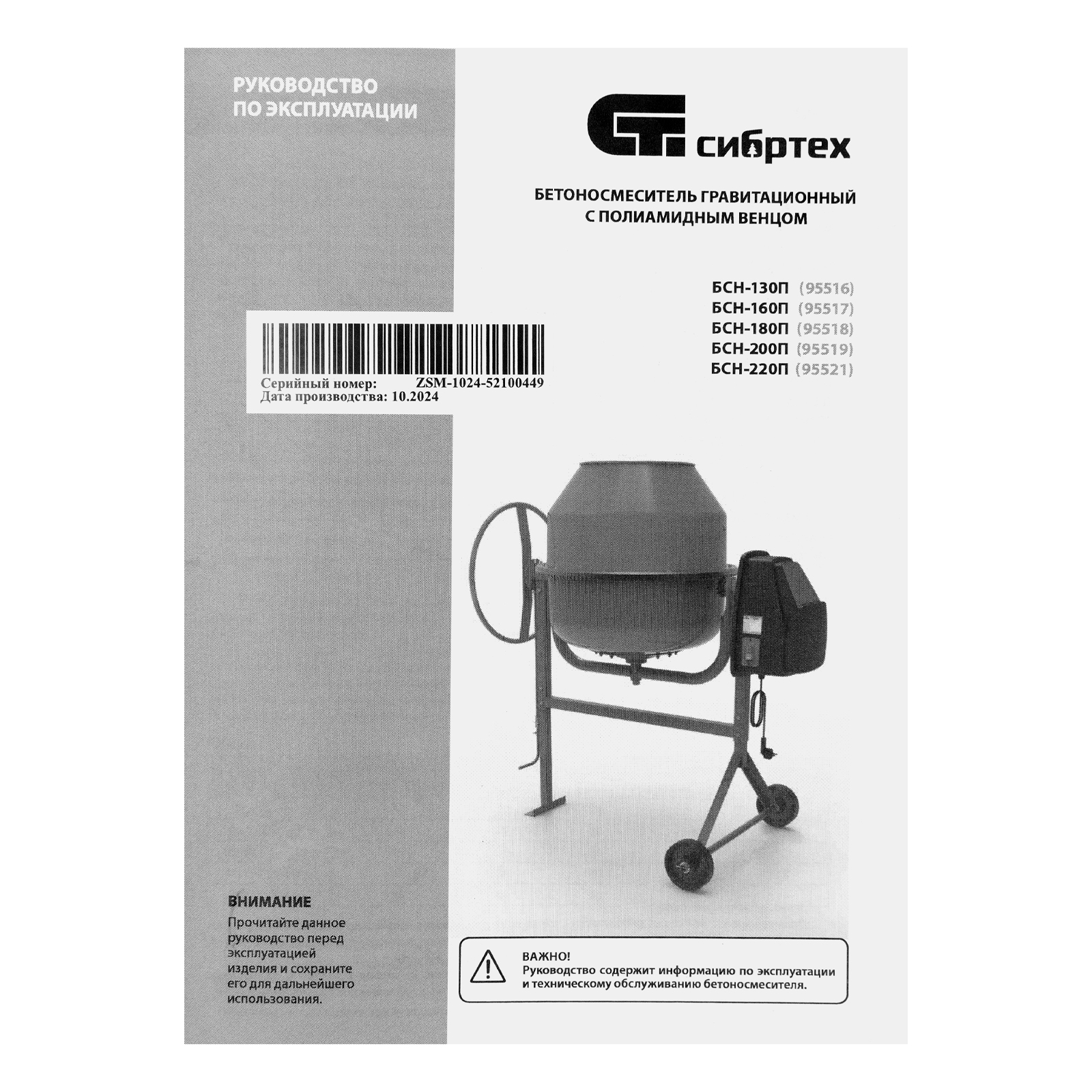 Бетоносмеситель БСН-220П, мощность 1000 Вт, полиамидный венец Сибртех в Краснодаре