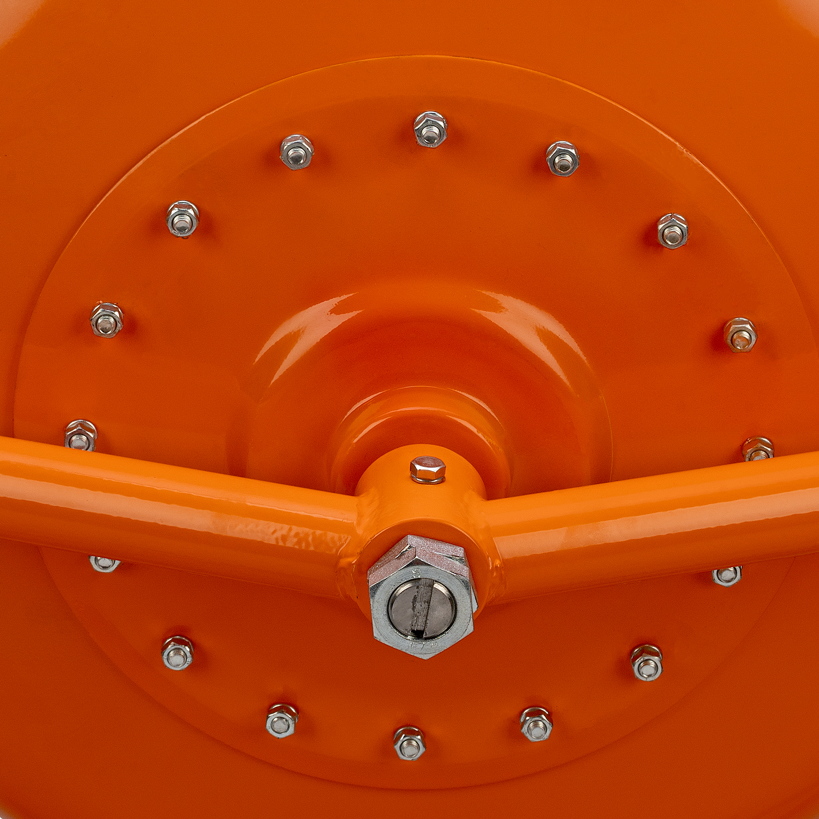 - Безопасная работа — стальной вертикальный элемент траверсы защищает привод бака от затягивания посторонних предметов, выключатель закрыт крышкой для предотвращения случайного запуска.
