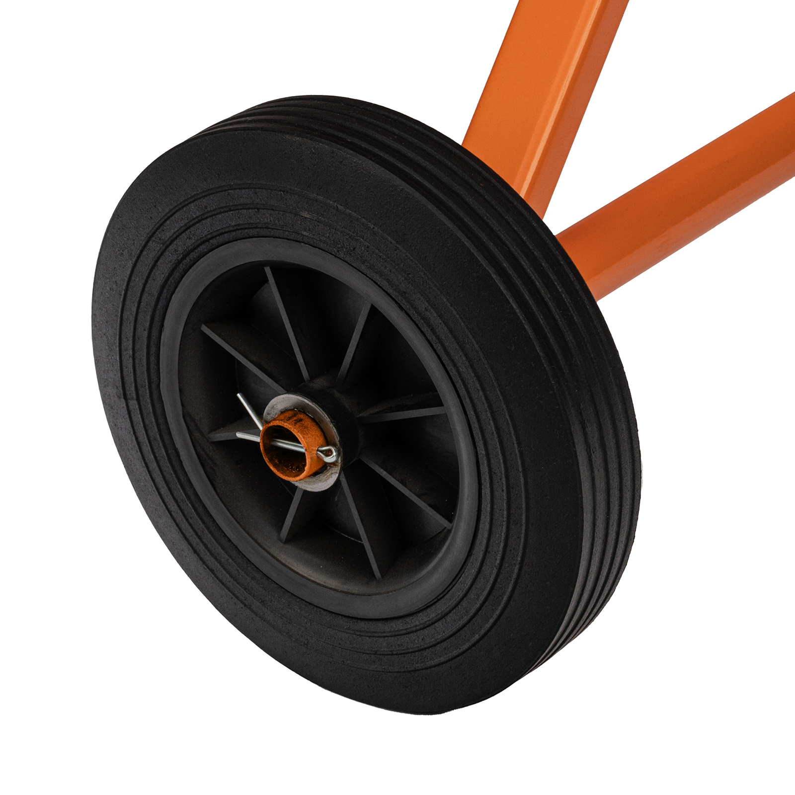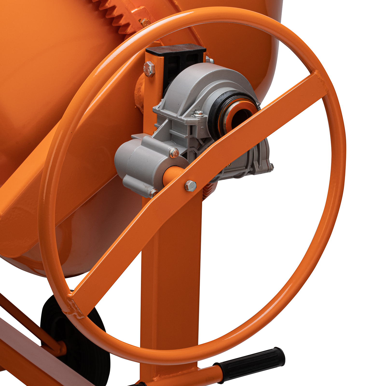 - Устойчивость — металлическая ножка с упором не дает бетоносмесителю опрокинуться во время работы.