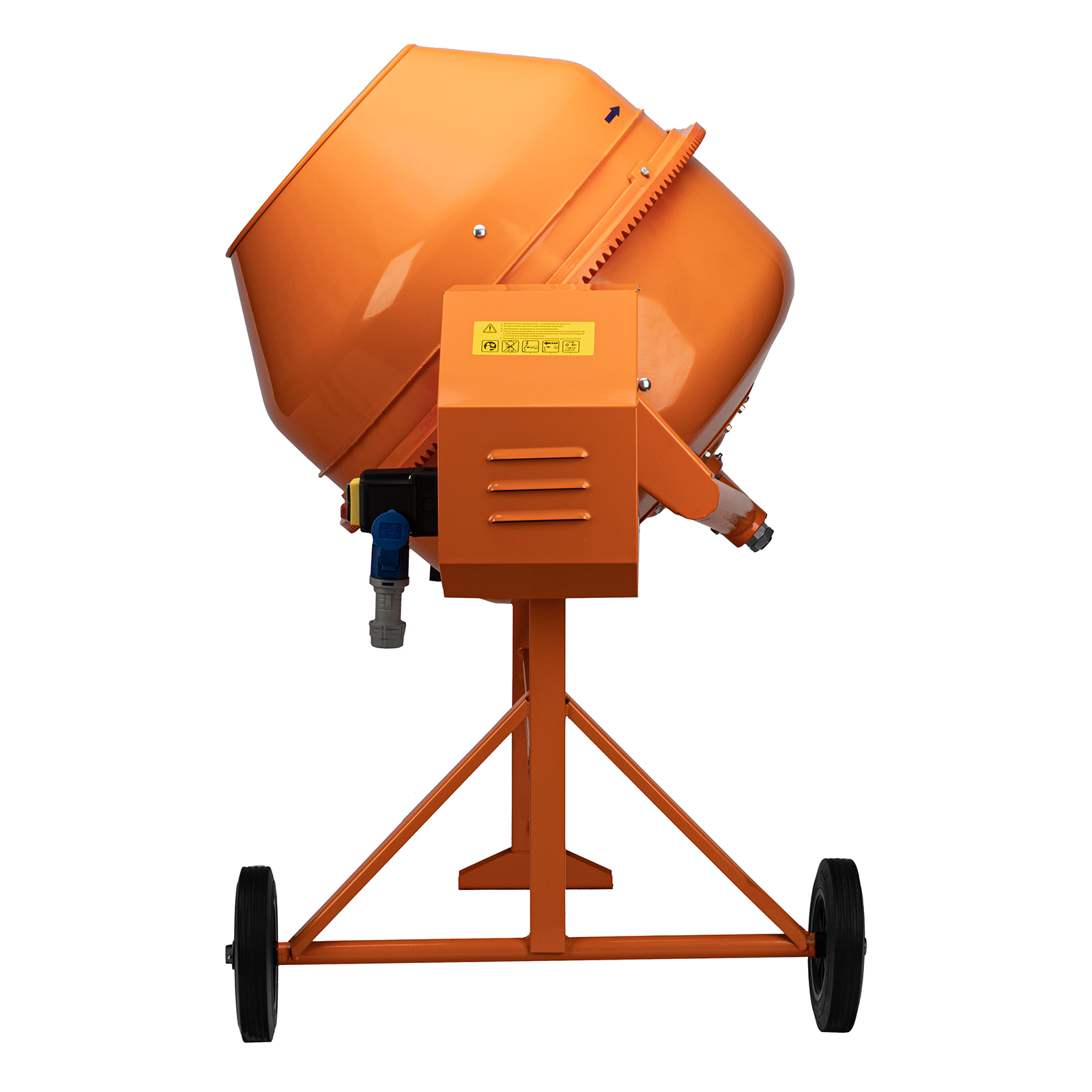 - Простое управление — удобный механизм опрокидывания и фиксации наклона барабана упрощает загрузку, перемешивание и выгрузку смеси.