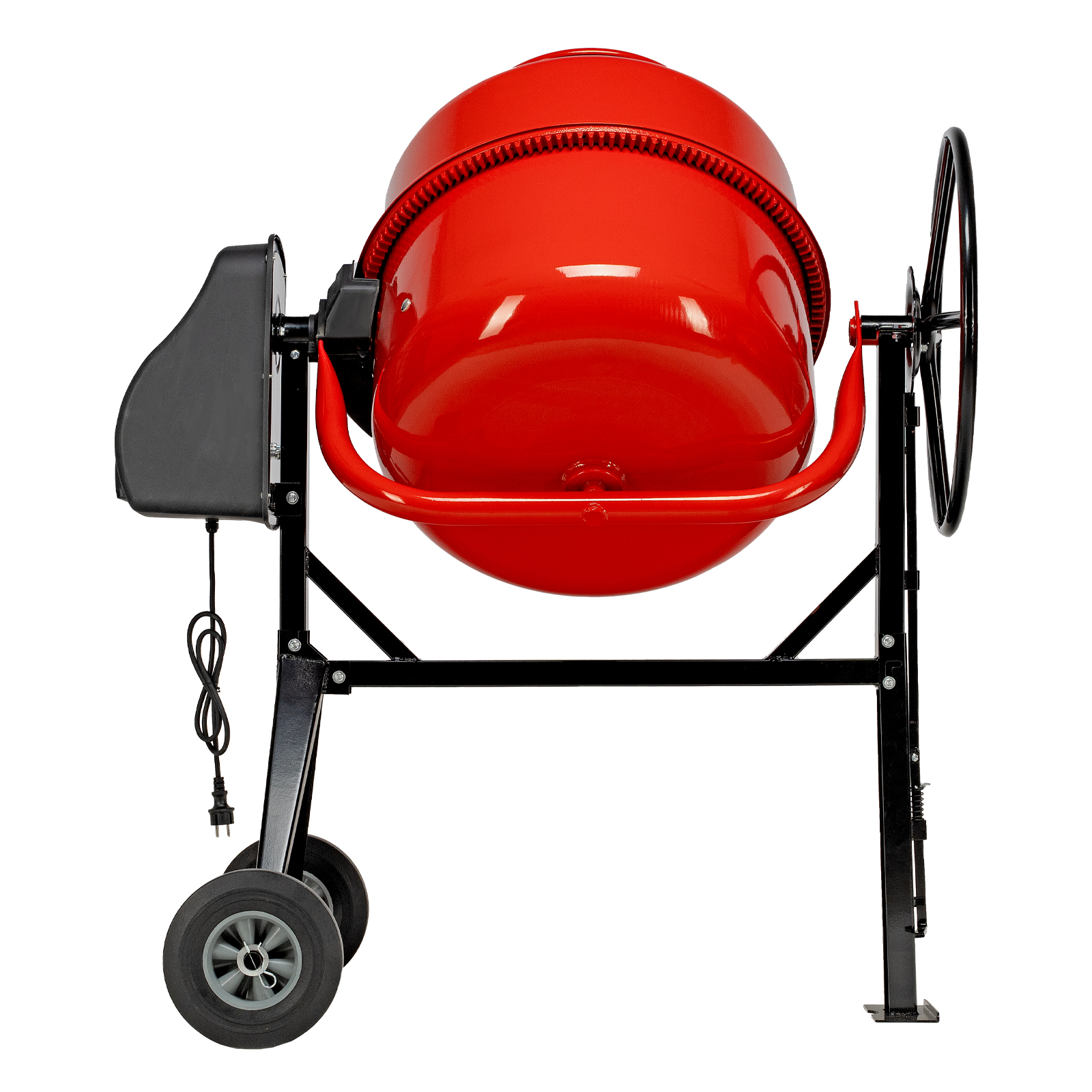 - Устойчивость — бетономешалка не опрокидывается во время работы.