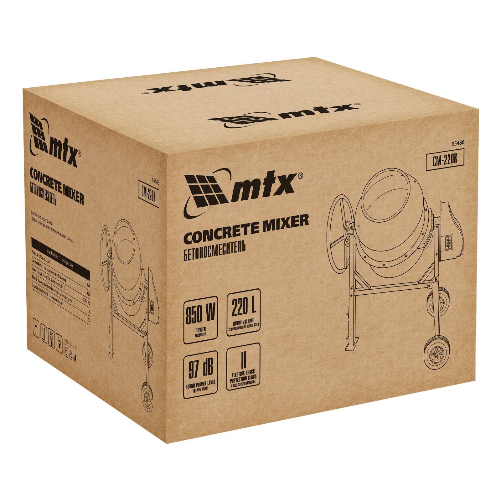 Бетоносмеситель MTX CM-220K 95486 мощностью 850 Вт, с баком на 220 л, предназначен для приготовления бетонных смесей и штукатурных растворов. Оптимальное соотношение мощности двигателя и объема бака обеспечивает высокую скорость перемешивания и надлежащее качество полученной смеси. Максимальный объем готового раствора составляет 147 л. Бетоносмеситель будет полезен на строительной площадке.