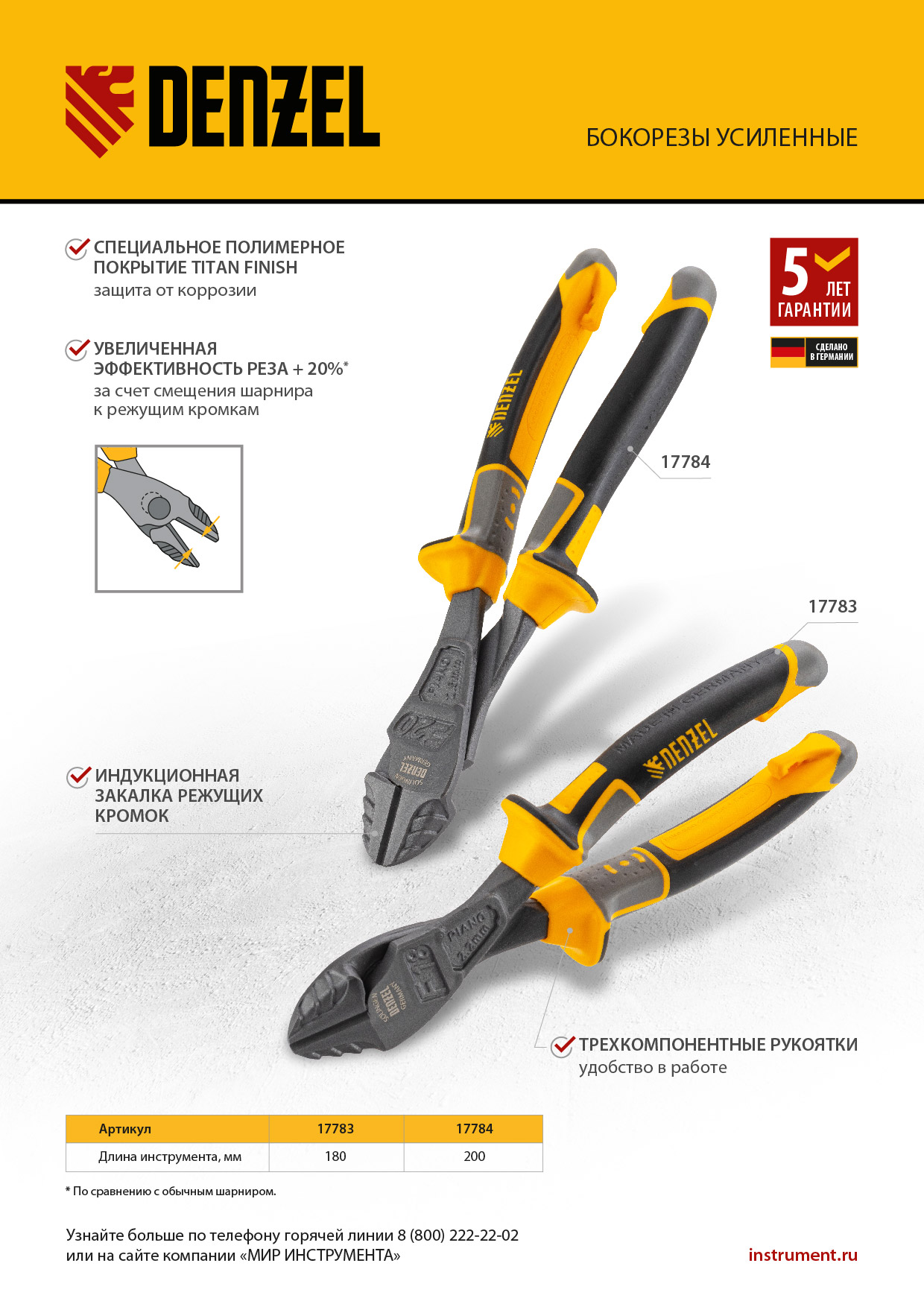 - Гарантия 5 лет — высокое качество инструмента подтверждено производителем.