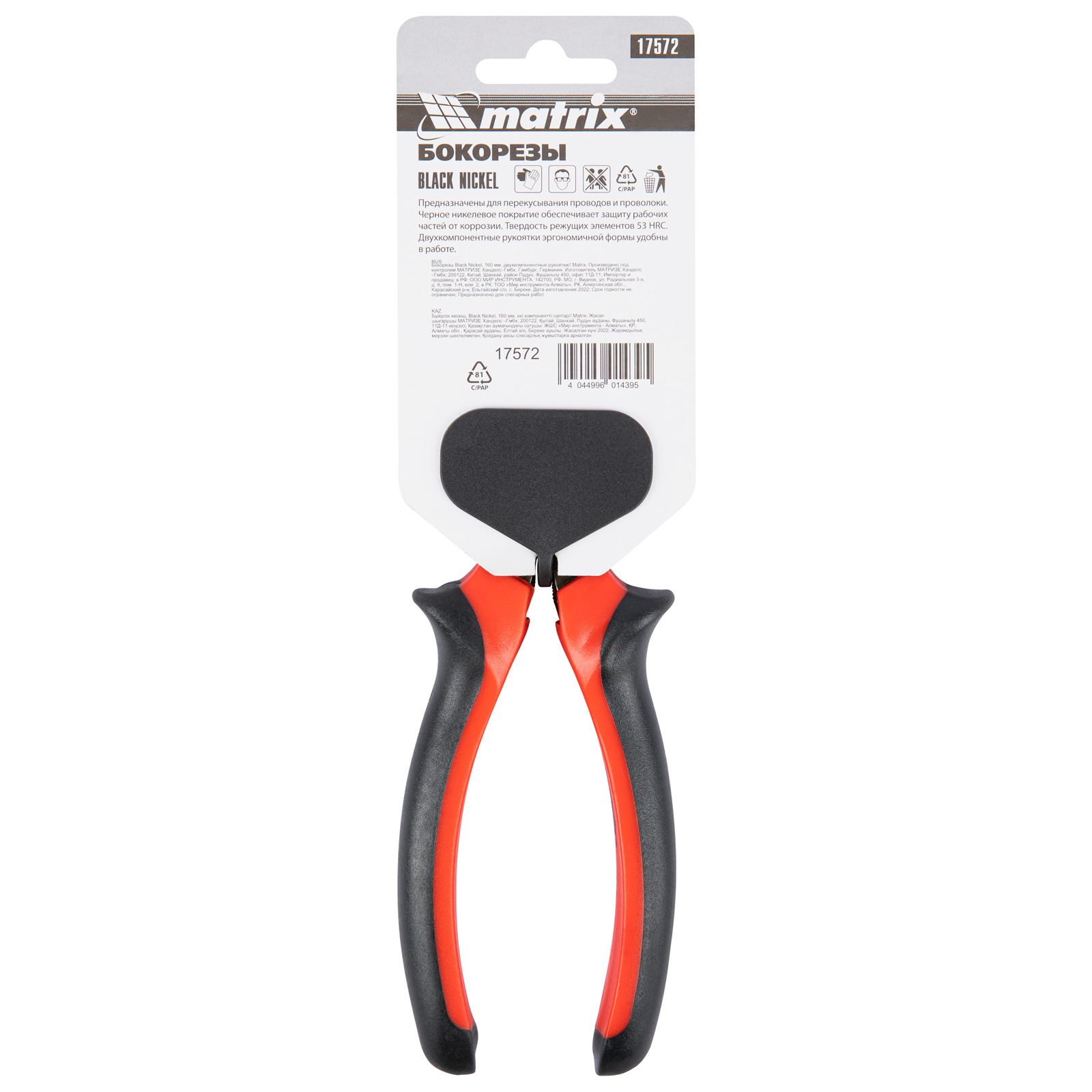 Бокорезы Matrix Black Nickel 17572 длиной 160 мм, с двухкомпонентными рукоятками, используются для разрезания проводов, кабелей, проволоки и перекусывания гвоздей. Пригодятся как начинающим мастерам, так и профессионалам для проведения монтажных и ремонтных работ.