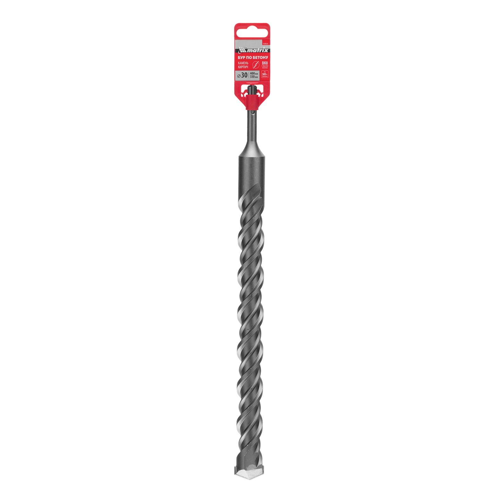 Бур по бетону Matrix 70954 длиной 400 мм, с хвостовиком SDS-plus, предназначен для установки на перфоратор и получения отверстий диаметром 30 мм в бетоне, камне и кирпиче. Позволяет эффективно решать поставленные задачи благодаря режущей пластине из высокотвердого сплава карбида вольфрама ВК8 твердостью 80-90 HRC.