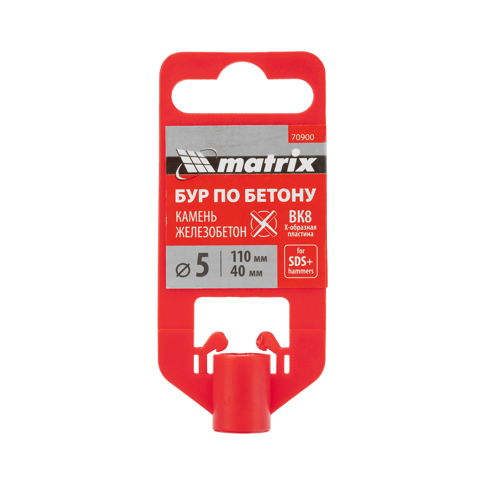 Бур по бетону Matrix 70900 длиной 110 мм, с хвостовиком SDS-plus и крестовой пластиной, предназначен для получения отверстий диаметром 5 мм в бетоне, камне и кирпиче. Крестовая пластина обеспечивает эффективную работу с твердыми материалами, в том числе армированным бетоном. Бур устанавливается в патрон перфоратора и используется во время проведения строительных работ.
