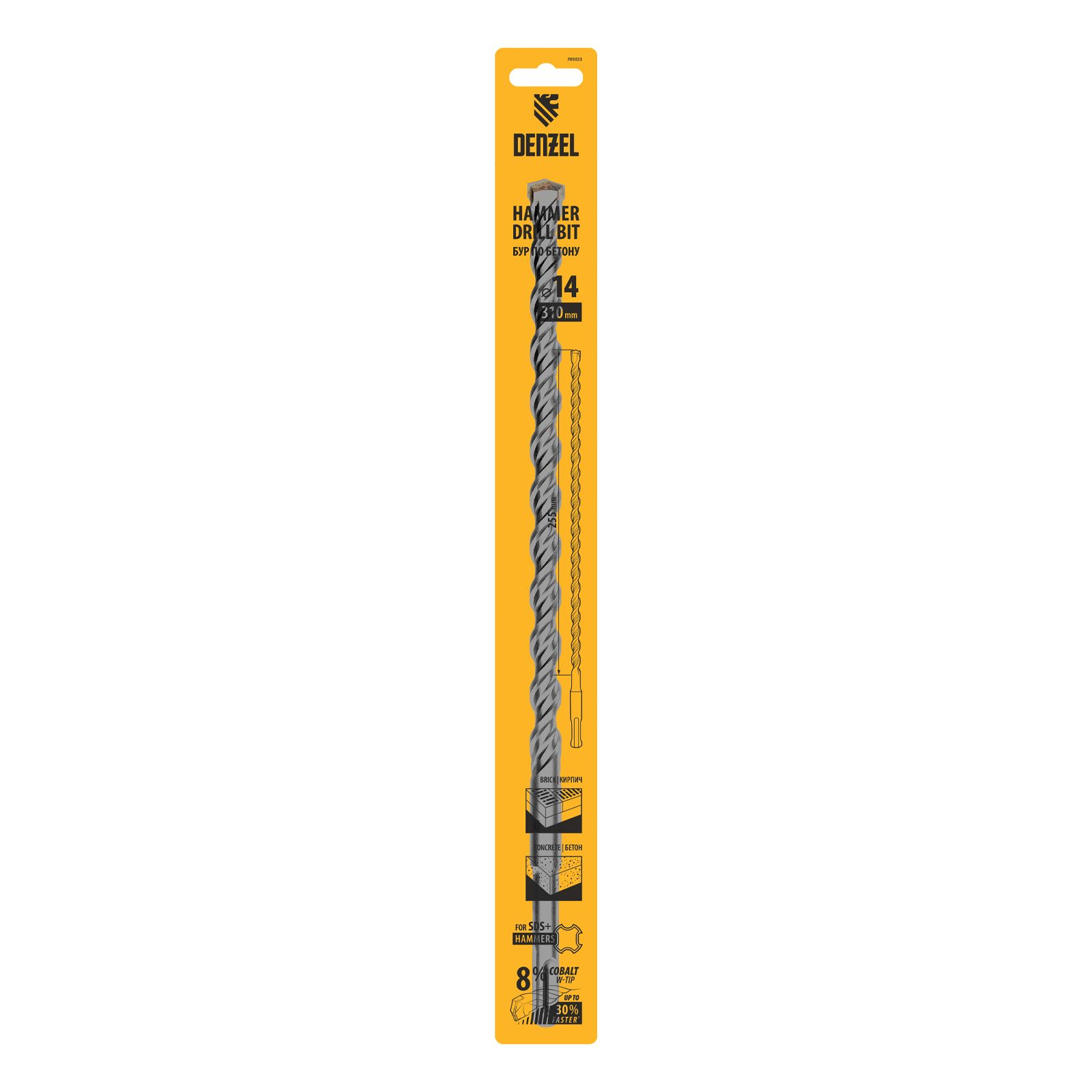 Бур по бетону Denzel Cobalt W-tip 705033 размером 14 х 310 мм, с хвостовиком SDS-plus и двойной спиралью, предназначен для сверления бетона, кирпича и камня. Используется в качестве оснастки для перфораторов с патроном SDS-plus. Бур оптимален для проведения строительных, ремонтных, монтажных работ.