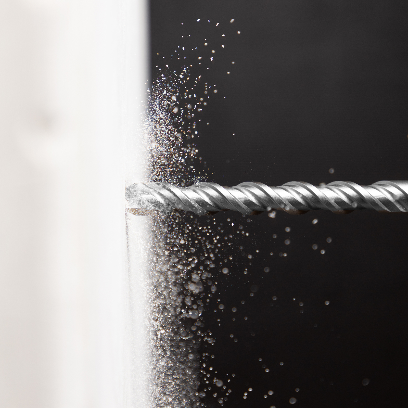 - Эффективный отвод шлама — двойная спираль и канавка с дополнительным желобом обеспечивают быстрое удаление пыли, что предотвращает перегрев рабочей части и продлевает срок службы бура.
