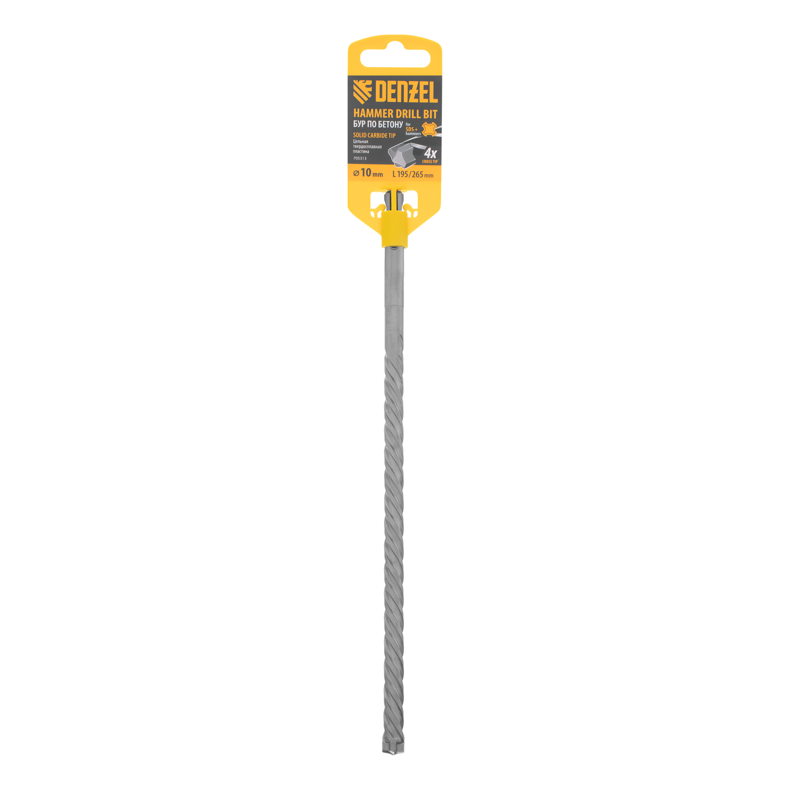 Бур по бетону, цельная крестовая пластина, 10x265 мм, SDS PLUS Denzel в Краснодаре