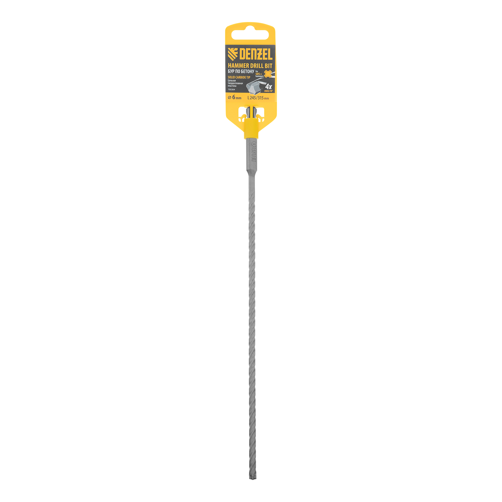 Бур по бетону, цельная крестовая пластина, 6x315 мм, SDS PLUS Denzel в Краснодаре