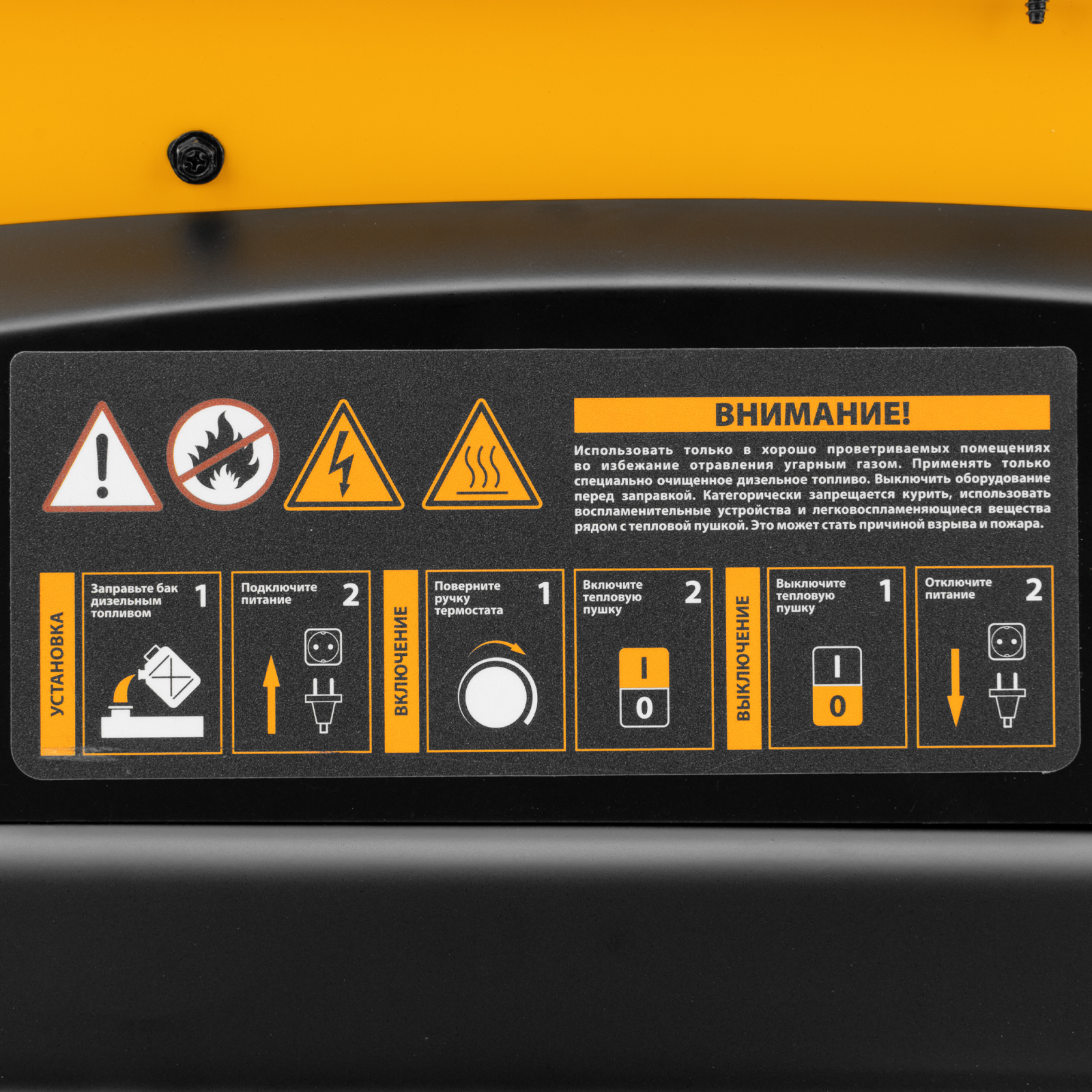 Дизельная тепловая пушка - 1 штРукоятка - 1 штКомплект крепежа - 1 штРуководство по эксплуатации с гарантийным талоном - 1 шт |