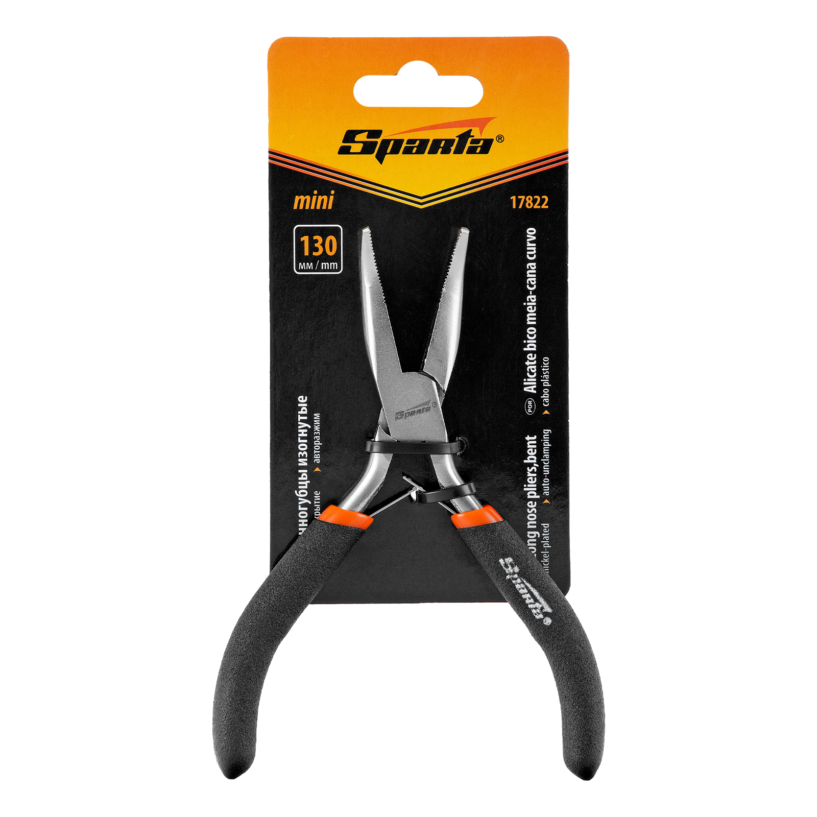 Длинногубцы изогнутые Mini, 130 мм, никелированные, авторазжим Sparta в Краснодаре