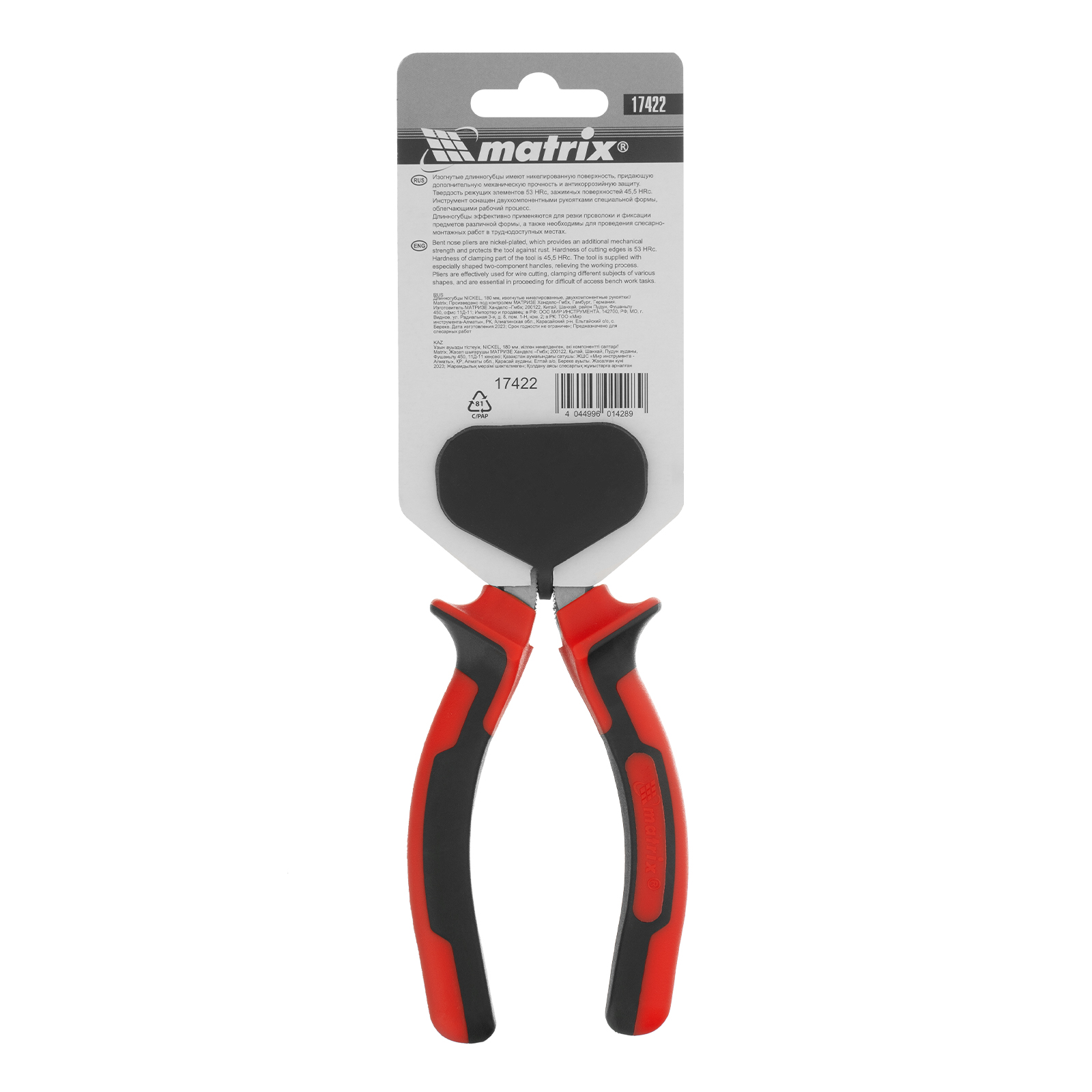 Длинногубцы изогнутые Nickel, 180 мм, никелированные, двухкомпонентные рукоятки Matrix в Краснодаре