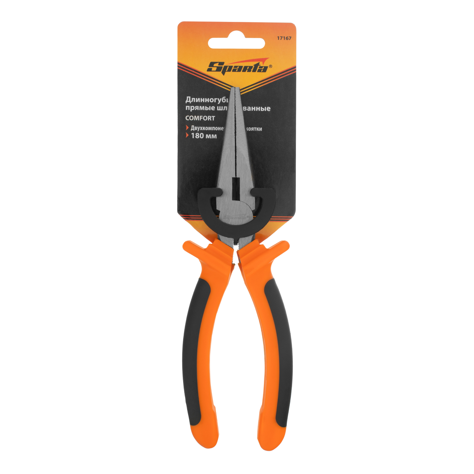 Длинногубцы прямые Comfort, 180 мм, шлифованные, двухкомпонентные рукоятки Sparta в Краснодаре