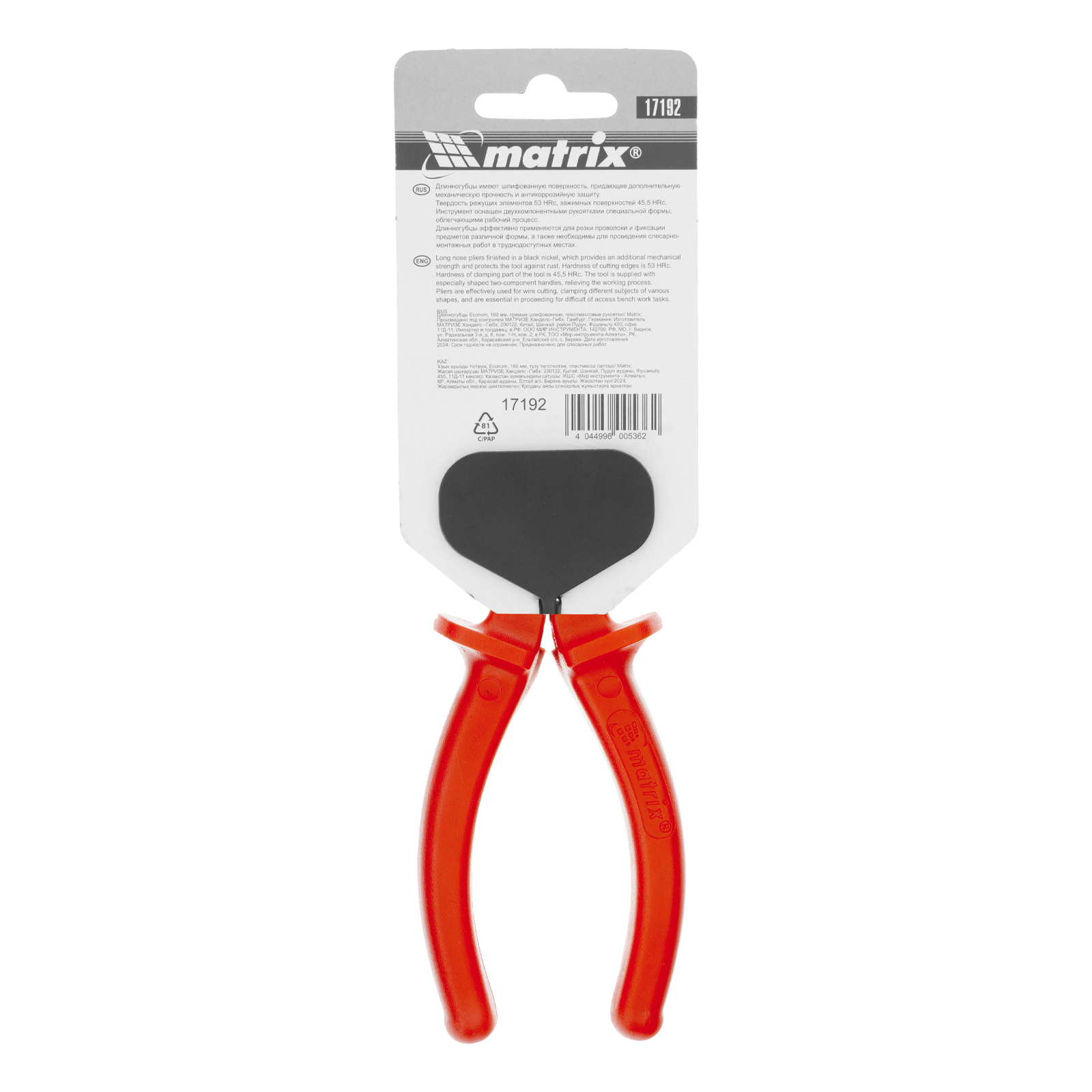 Длинногубцы прямые Econom, 160 мм, шлифованные, пластмассовые рукоятки Matrix в Краснодаре