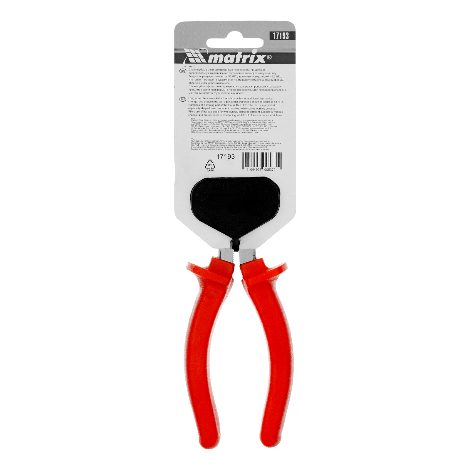 Длинногубцы прямые Econom, 180 мм, шлифованные, пластмассовые рукоятки Matrix в Краснодаре