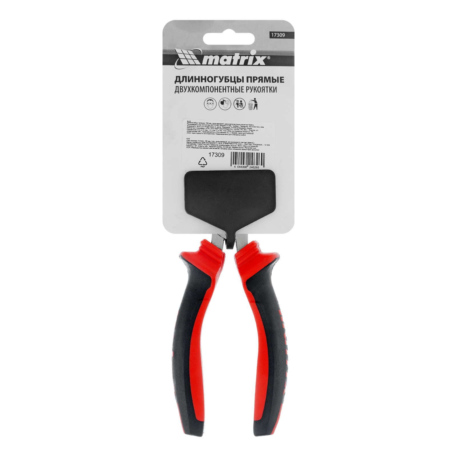 Длинногубцы прямые, 160 мм, хром-ванадий, двухкомпонентные рукоятки Matrix в Краснодаре