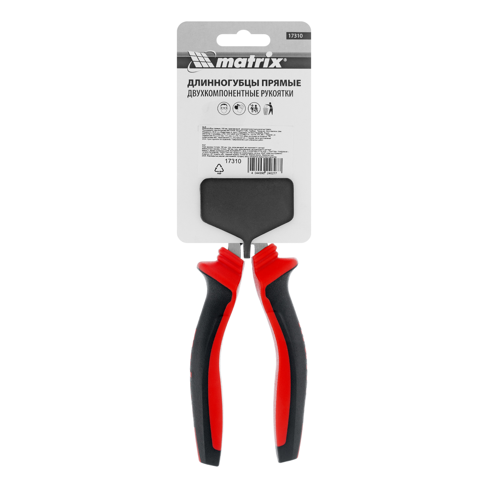 Длинногубцы прямые, 180 мм, хром-ванадий, двухкомпонентные рукоятки Matrix в Краснодаре