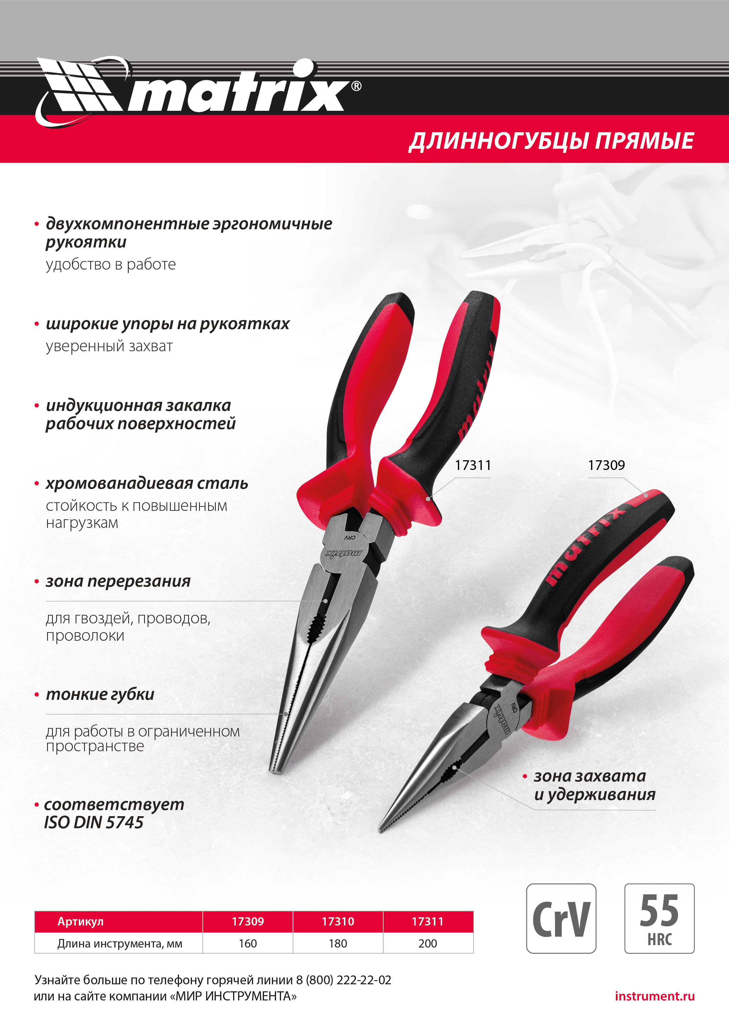 Длинногубцы прямые, 200 мм, хром-ванадий, двухкомпонентные рукоятки Matrix в Краснодаре
