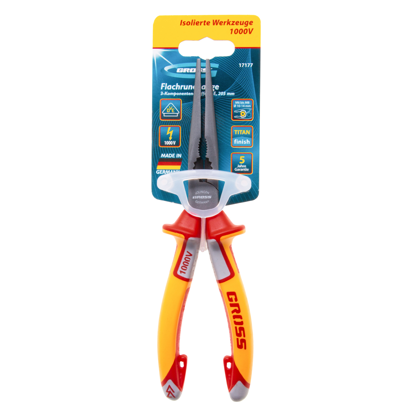 Длинногубцы прямые, диэлектрические рукоятки до 1000 В, трехкомпонентные рукоятки, 205 мм Gross в Краснодаре