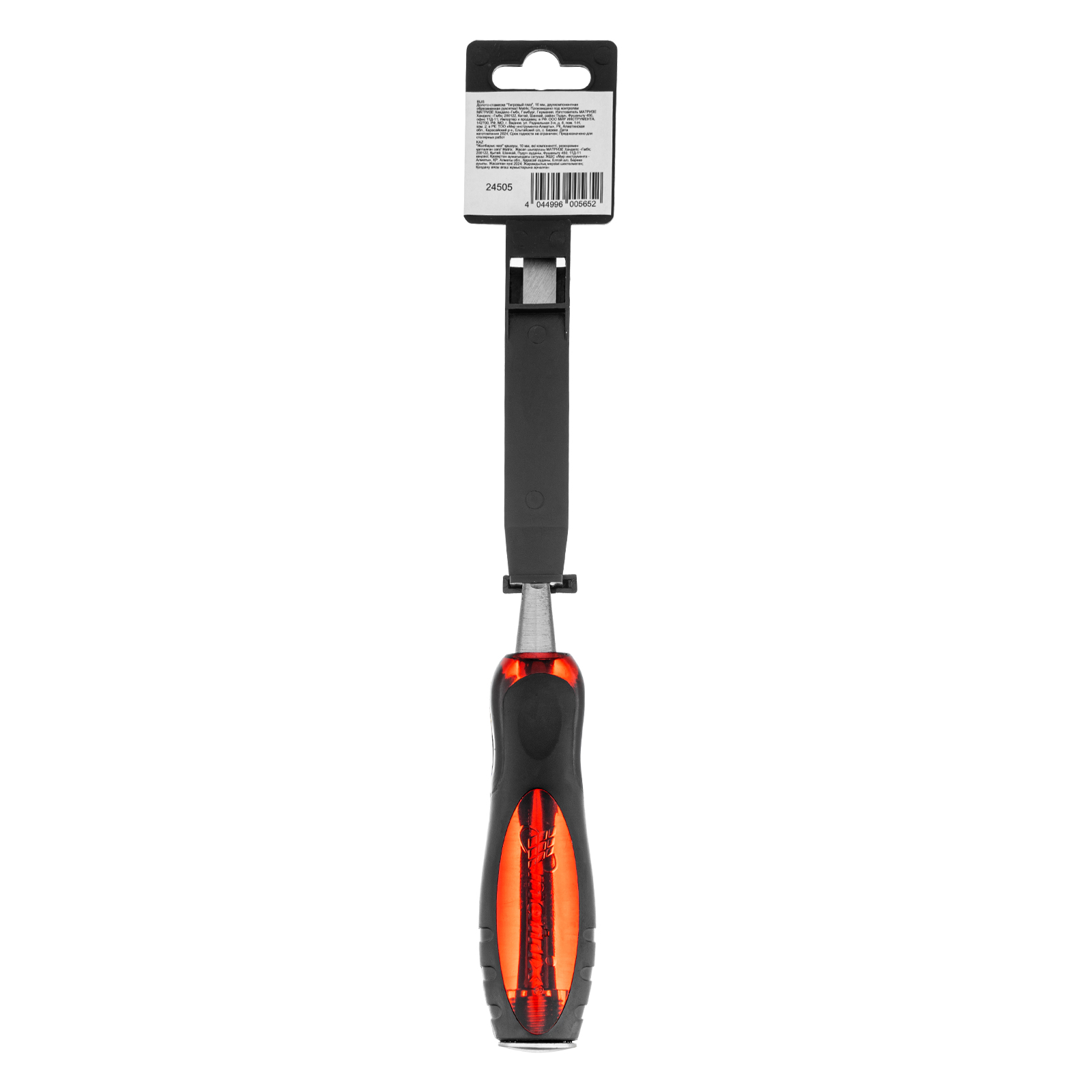 Долото-стамеска Matrix «Тигровый глаз» 24505 с полотном шириной 10 мм и двухкомпонентной обрезиненной рукояткой используется в столярном и плотницком деле, в производстве мебели. Позволяет вырезать углубления, формировать пазы, зачищать шипы и гнезда, снимать фаски. Инструмент выдерживает удары киянкой или молотком, т. к. металлический затыльник защищает его от деформации. Долото относится к профессиональному ручному инструменту, но может применяться и в домашних условиях.