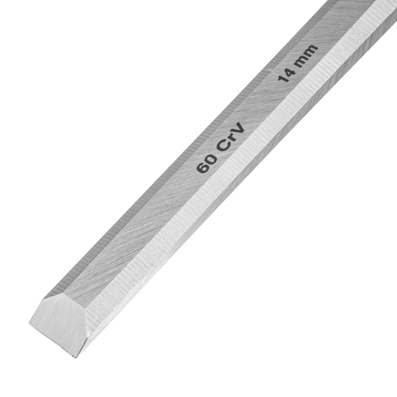 - Длительное сохранение режущих свойств — долото-стамеска обладает твердостью 65 HRC (0,7 длины рабочей части полотна), острое, как бритва, лезвие обработано на заводе под углом 20-35°, повторная заточка потребуется минимум через 6 месяцев.