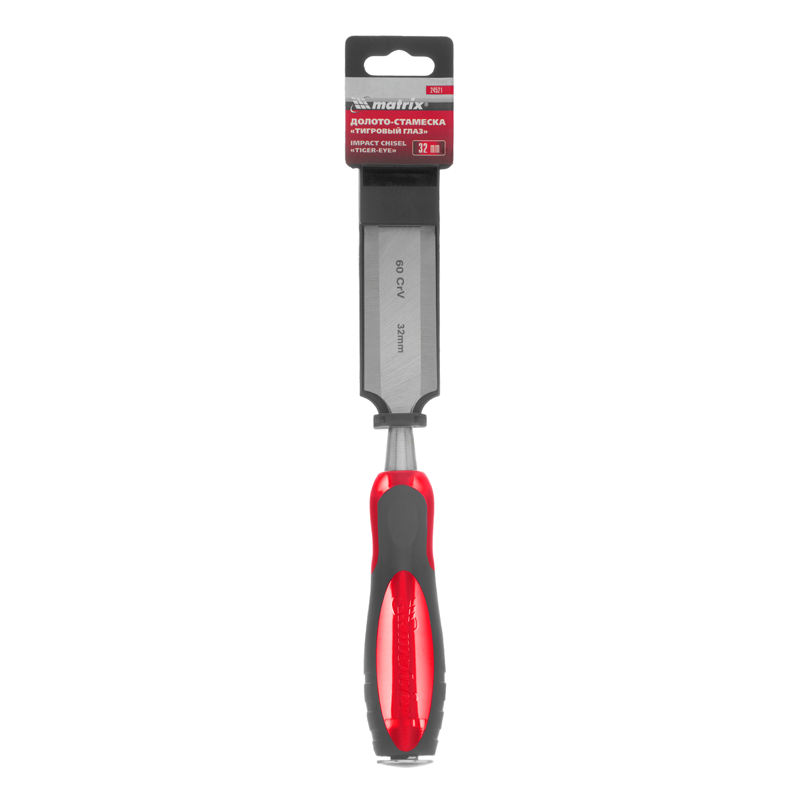 Долото-стамеска Matrix «Тигровый глаз» 24521 с полотном шириной 32 мм и двухкомпонентной обрезиненной рукояткой используется в столярном и плотницком деле, в производстве мебели. Позволяет вырезать углубления, формировать пазы, зачищать шипы и гнезда, снимать фаски. Инструмент выдерживает удары киянкой или молотком, т. к. металлический затыльник защищает его от деформации. Долото относится к профессиональному ручному инструменту, но может применяться и в домашних условиях.