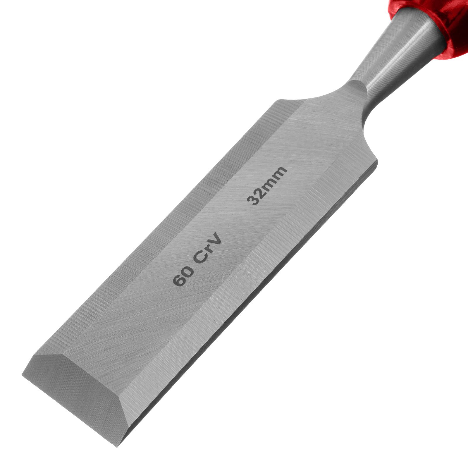 - Длительное сохранение режущих свойств — долото-стамеска обладает твердостью 65 HRC (0,7 длины рабочей части полотна), острое, как бритва, лезвие обработано на заводе под углом 20-35°, повторная заточка потребуется минимум через 6 месяцев.