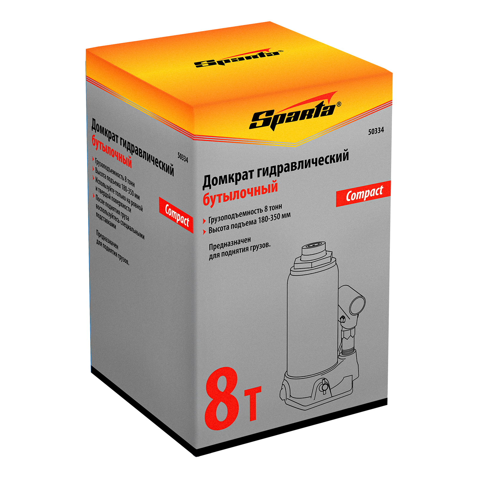 Домкрат гидравлический бутылочный 8 т, h подъема 180-350 мм Sparta Compact в Краснодаре