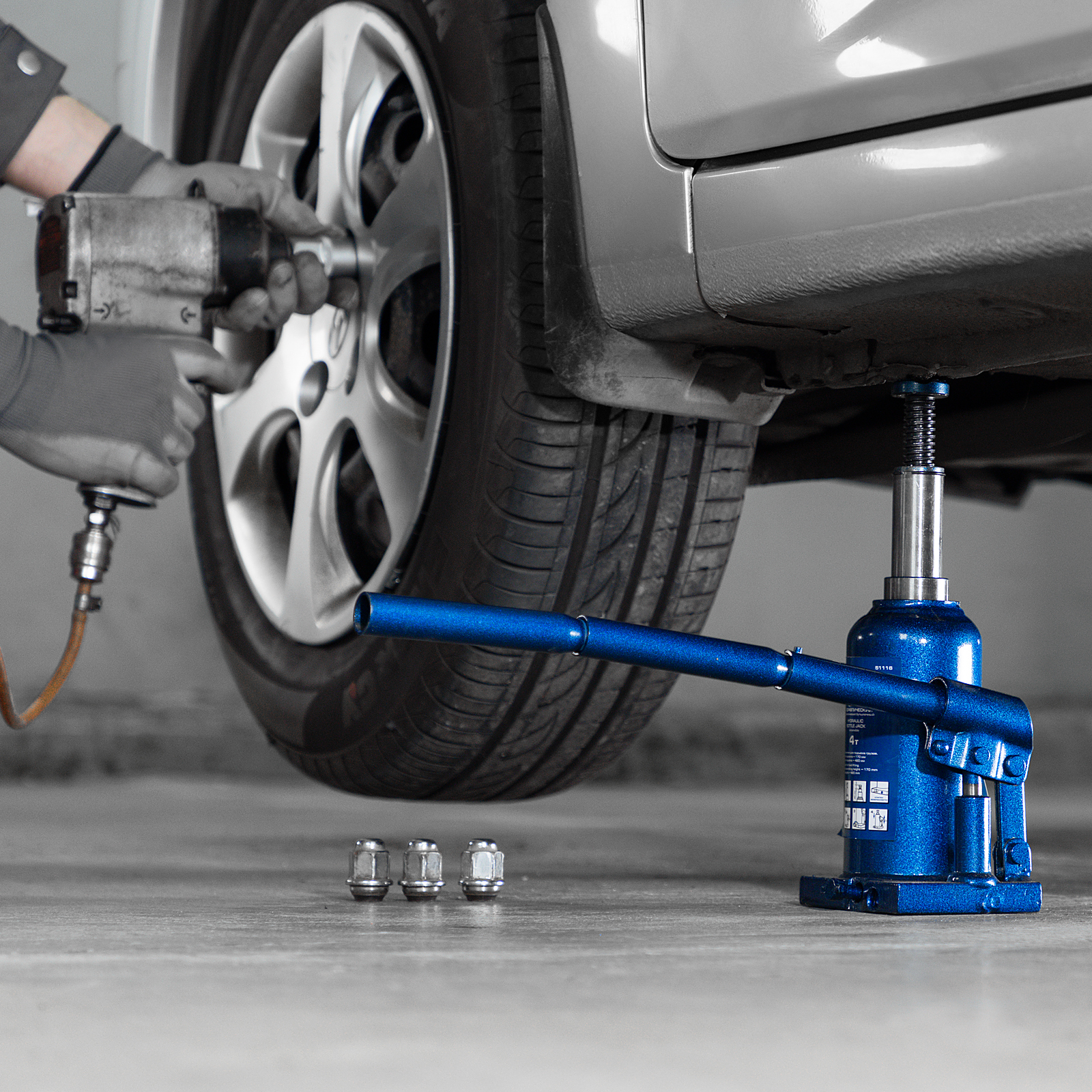 - Малый вес 4,85 кг — домкрат легко перемещать и перевозить в багажнике машины.