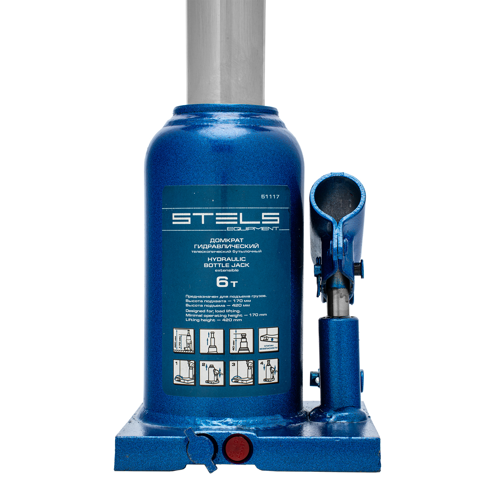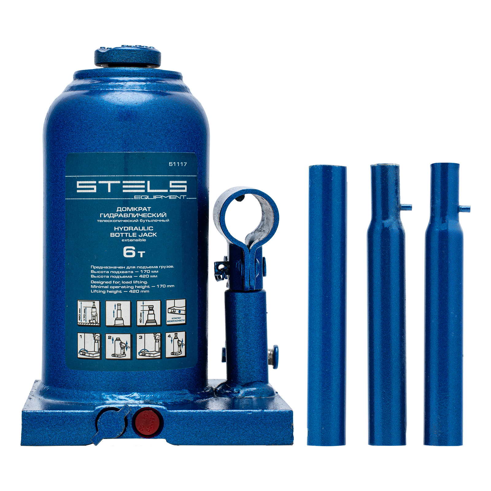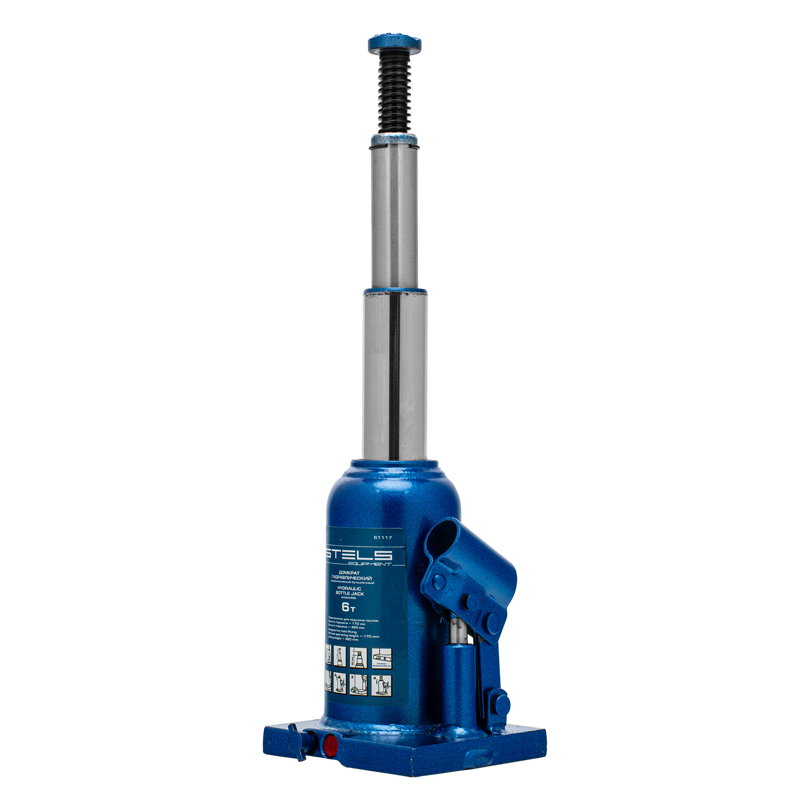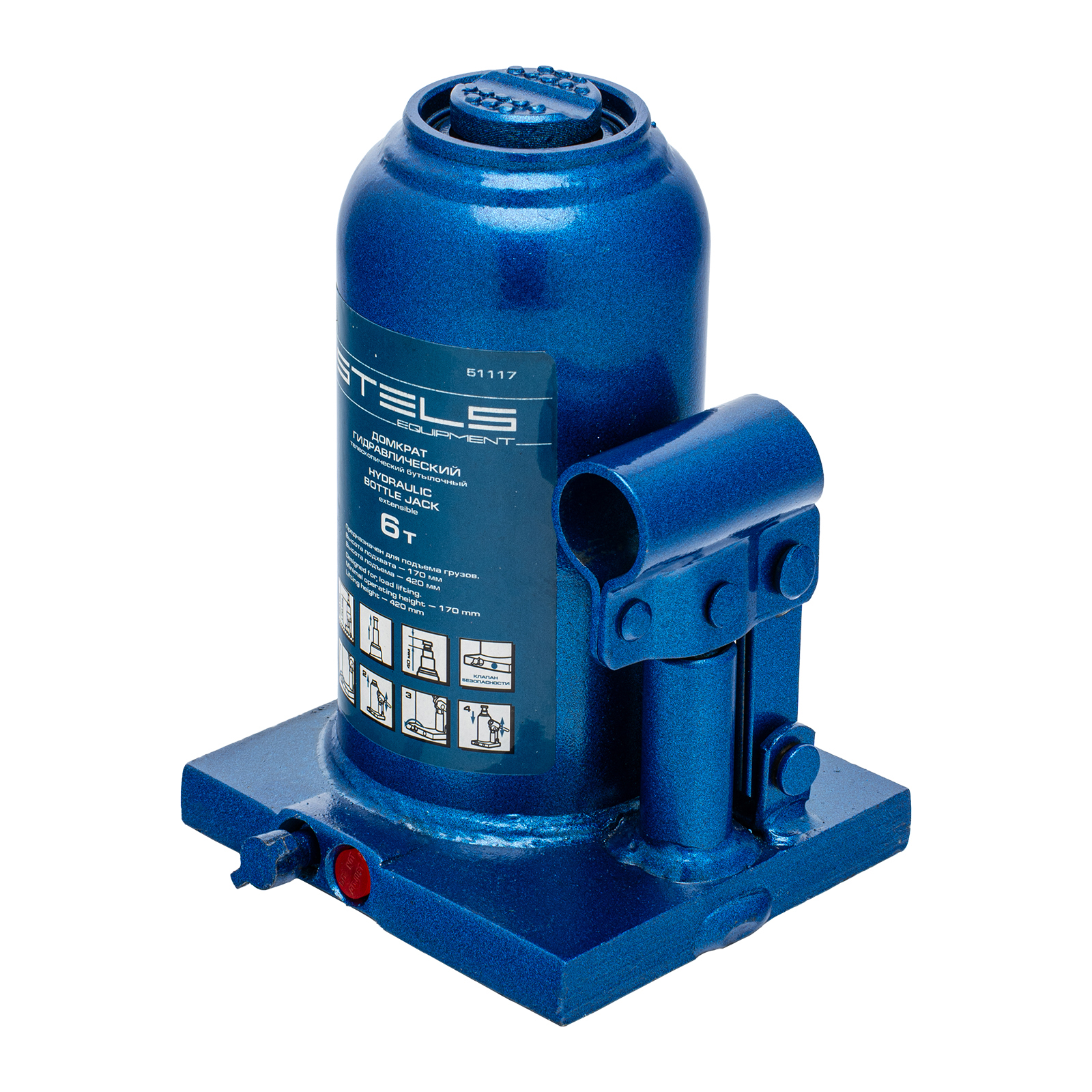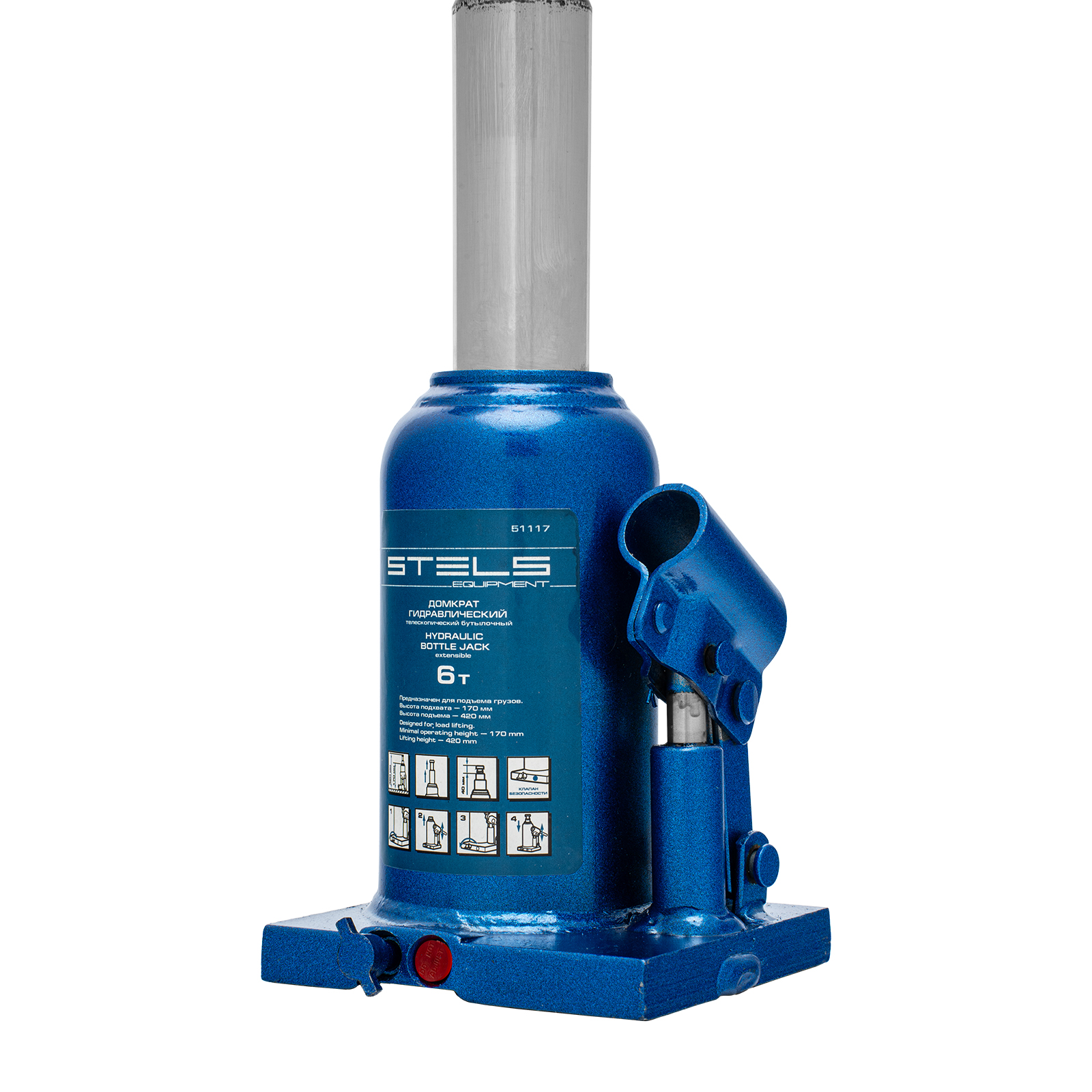 Гидравлический бутылочный телескопический домкрат Stels 51117 используется для поднятия грузов весом до 6 т с на высоту 170-420 мм. Не требует больших усилий и оптимален для автомобилей с большим клиренсом. Домкрат можно использовать в гараже для самостоятельного ремонта машины или в автосервисе для решения профессиональных задач.