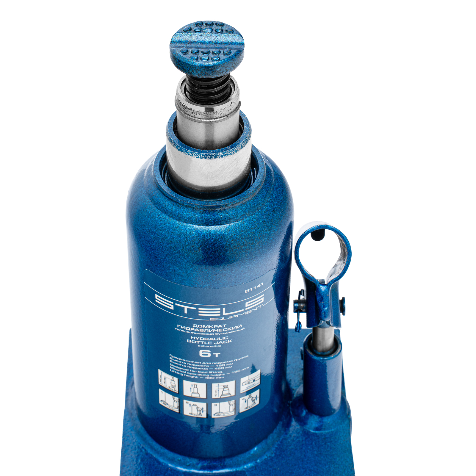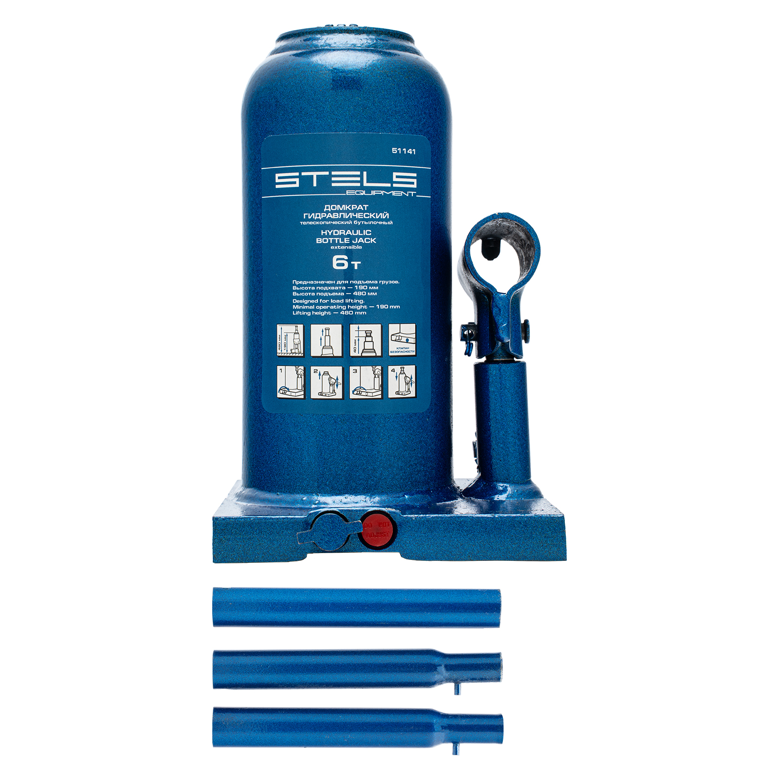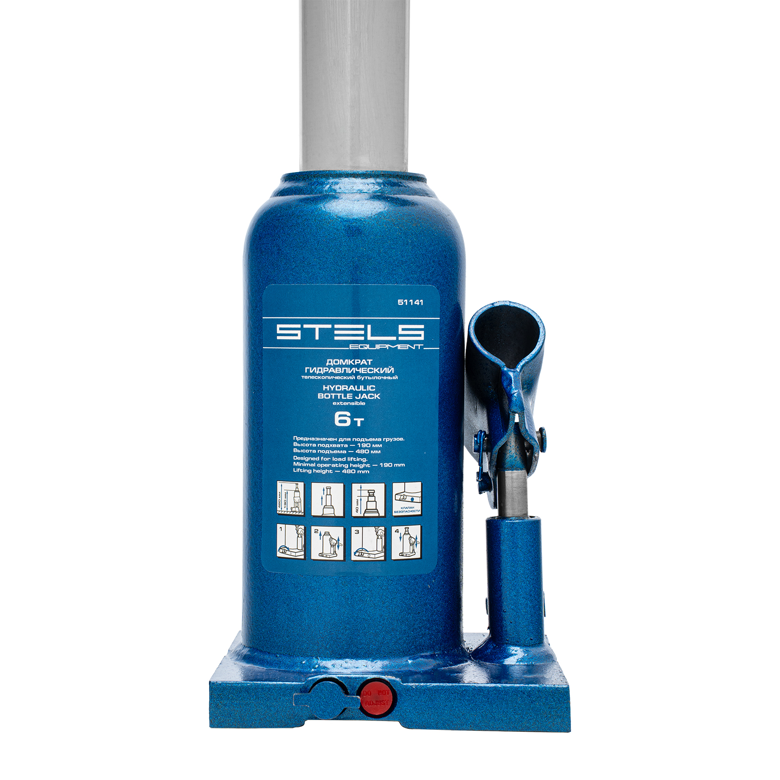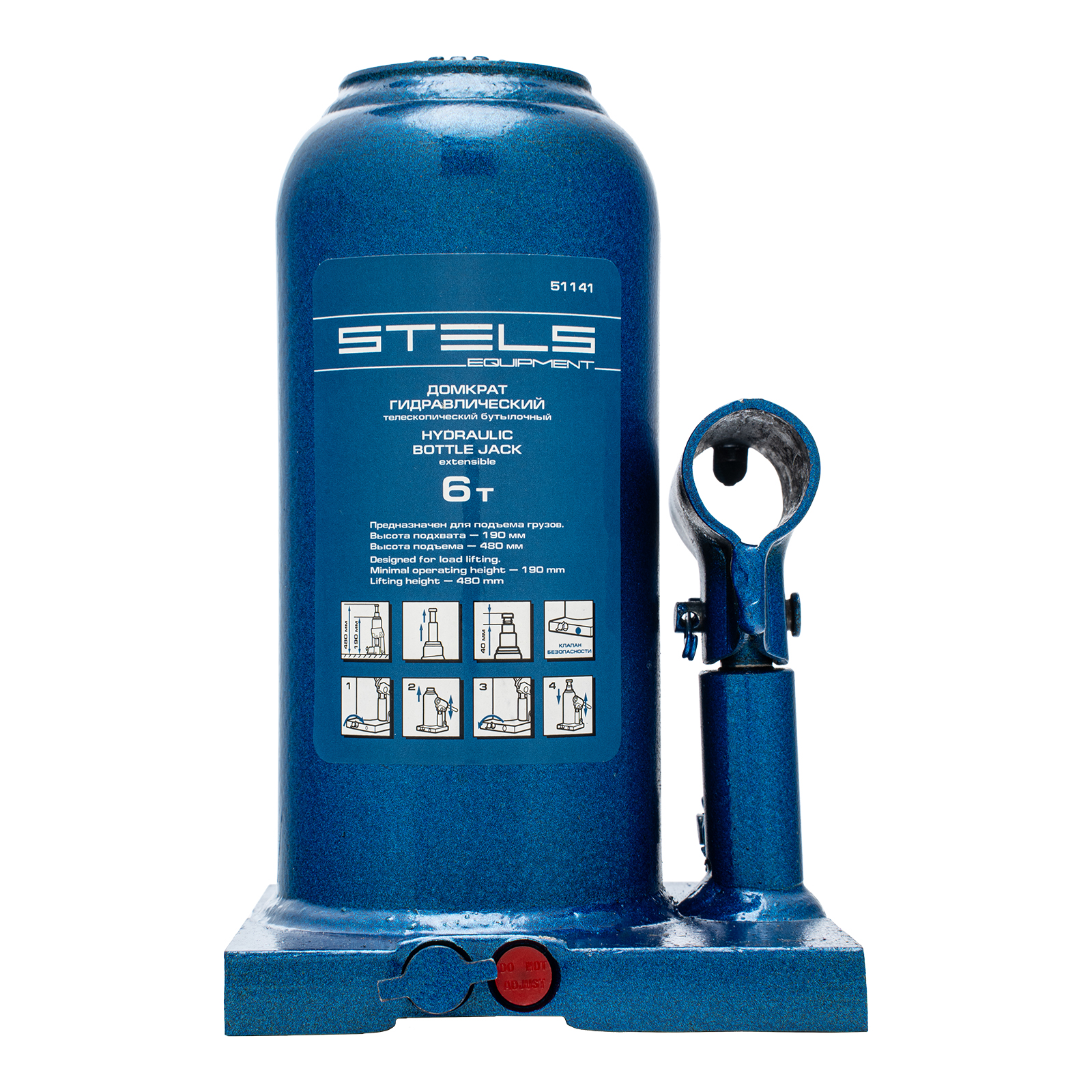 Гидравлический бутылочный телескопический домкрат Stels 51141 используется для поднятия грузов весом до 6 т с на высоту 190-480 мм. Не требует больших усилий и оптимален для автомобилей с большим клиренсом. Домкрат можно использовать в гараже для самостоятельного ремонта машины или в автосервисе для решения профессиональных задач.