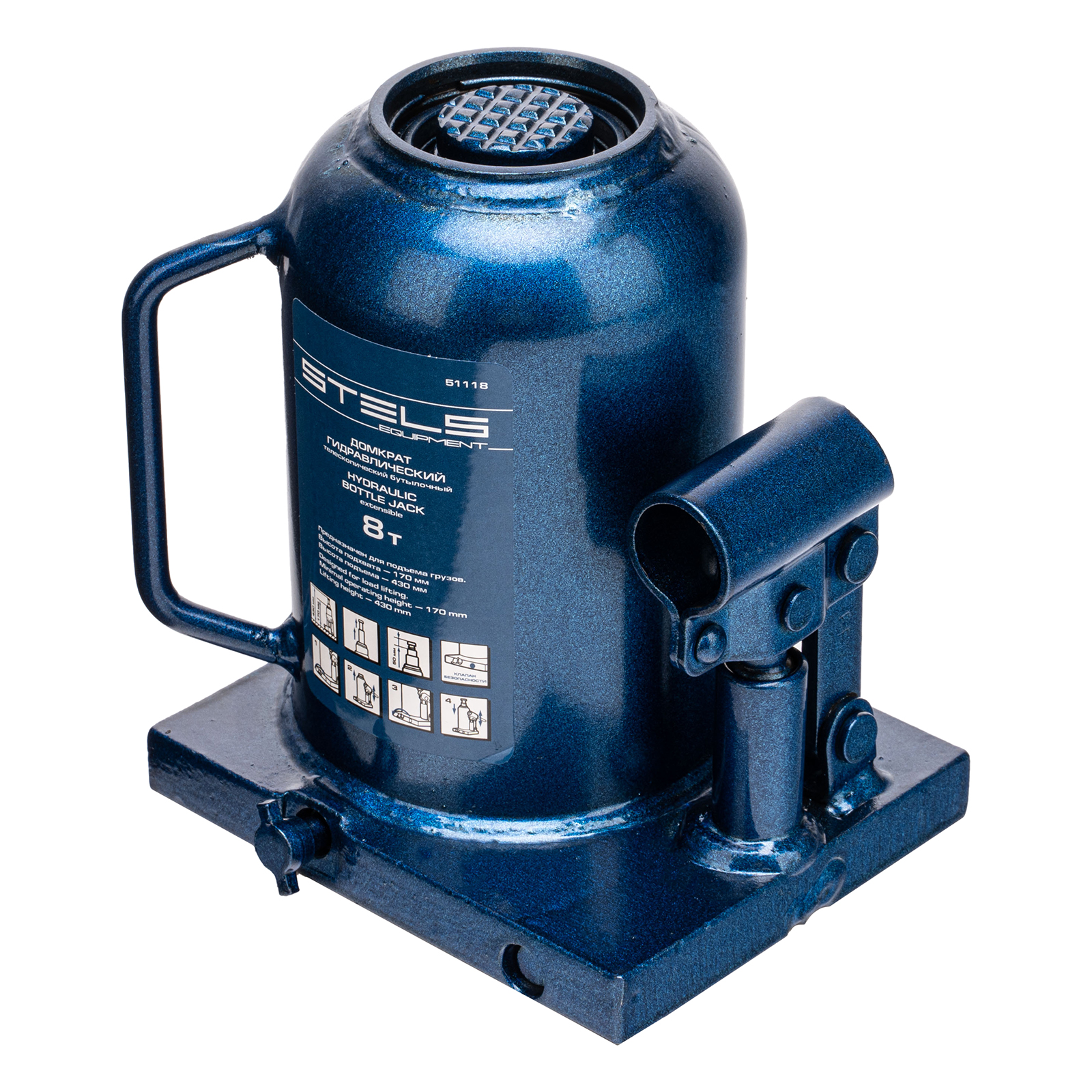 Гидравлический бутылочный телескопический домкрат Stels 51118 используется для поднятия грузов весом до 8 т с на высоту 170-430 мм. Не требует больших усилий и оптимален для автомобилей с большим клиренсом. Домкрат можно использовать в гараже для самостоятельного ремонта машины или в автосервисе для решения профессиональных задач.