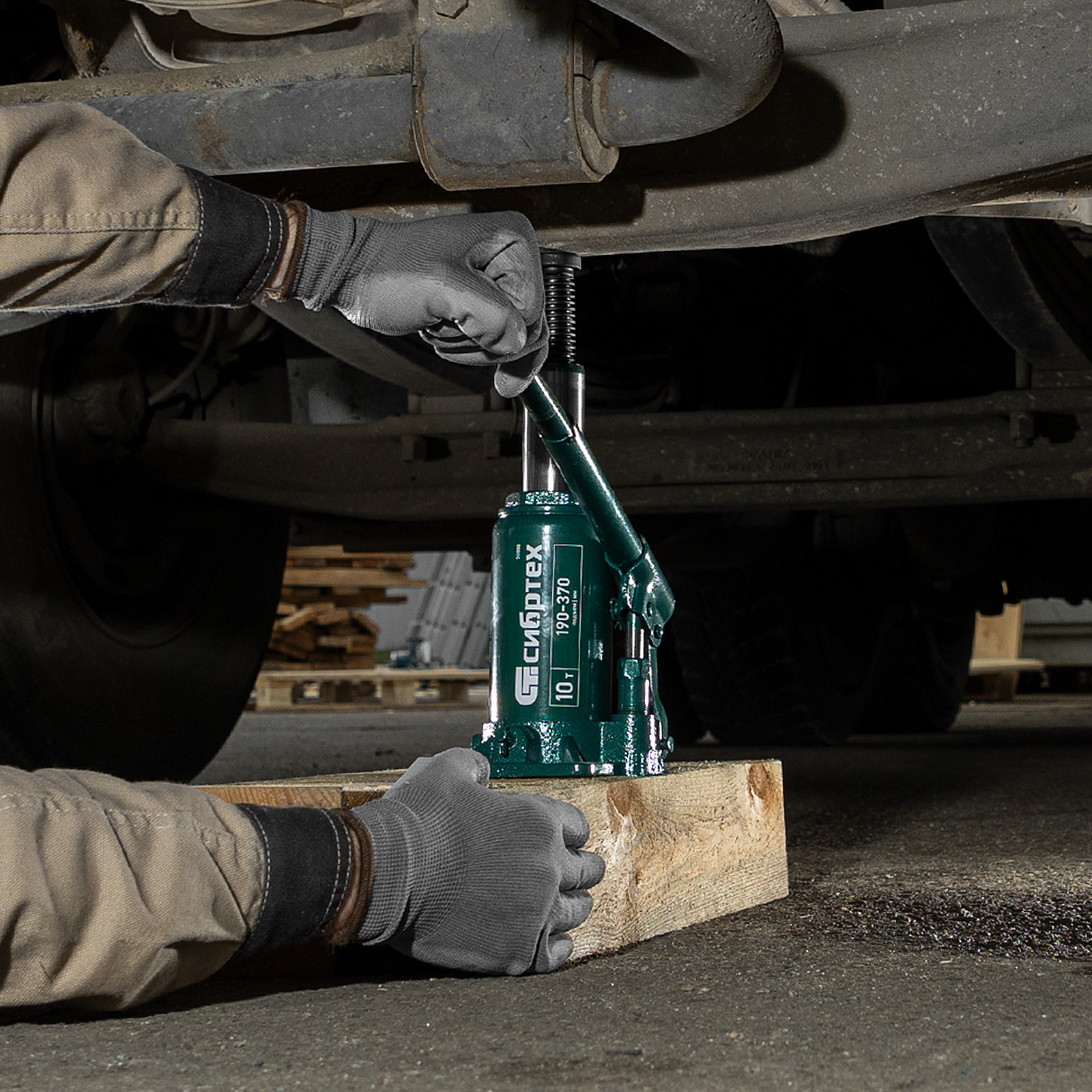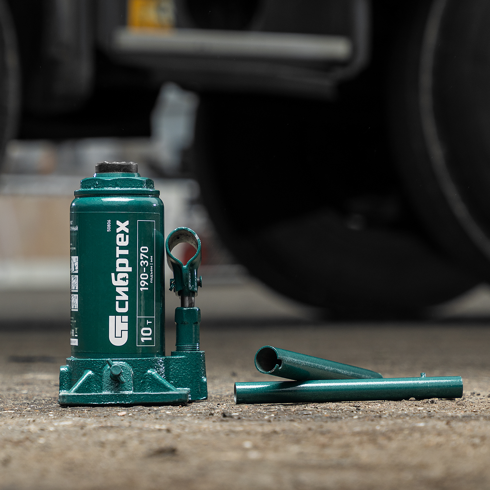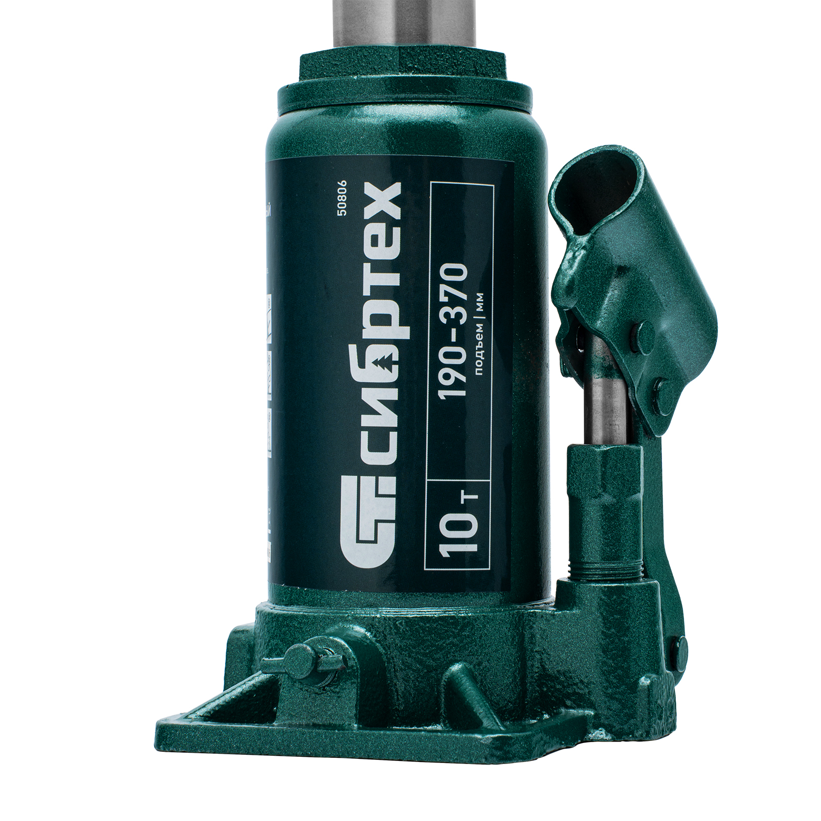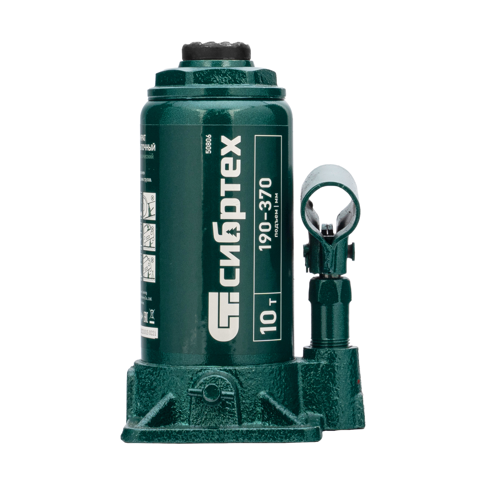 Домкрат гидравлический бутылочный Сибртех 50806 предназначен для подъема грузов массой до 10 т на высоту от 190 до 370 мм. Не требует больших усилий от пользователя и значительно облегчает рабочий процесс. Домкрат будет полезен при проведении техобслуживания машины в автосервисе или гараже.
