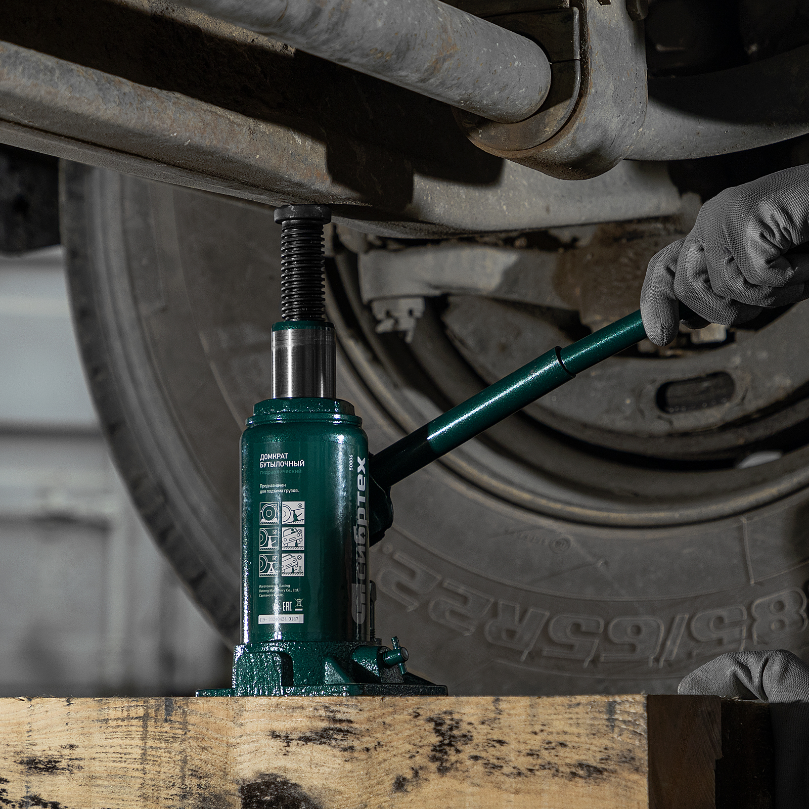 - Удобное хранение и транспортировка — домкрат весит всего 4,3 кг, а благодаря съемному рычагу не занимает много места.