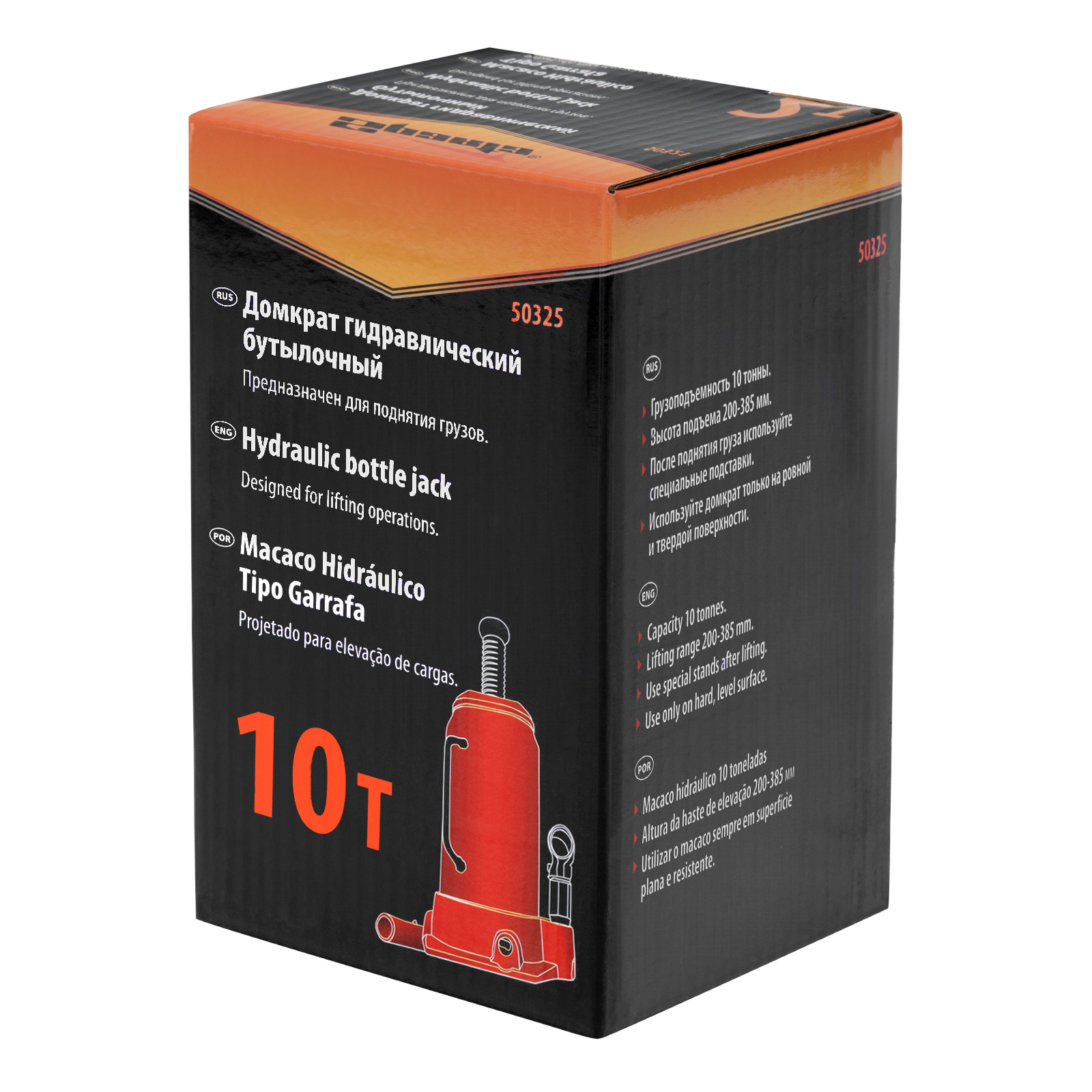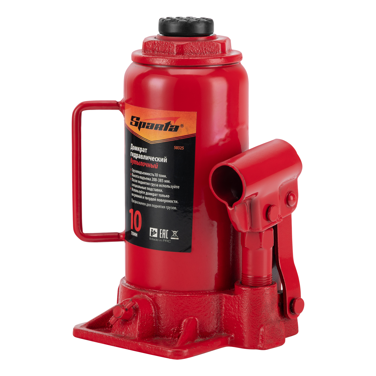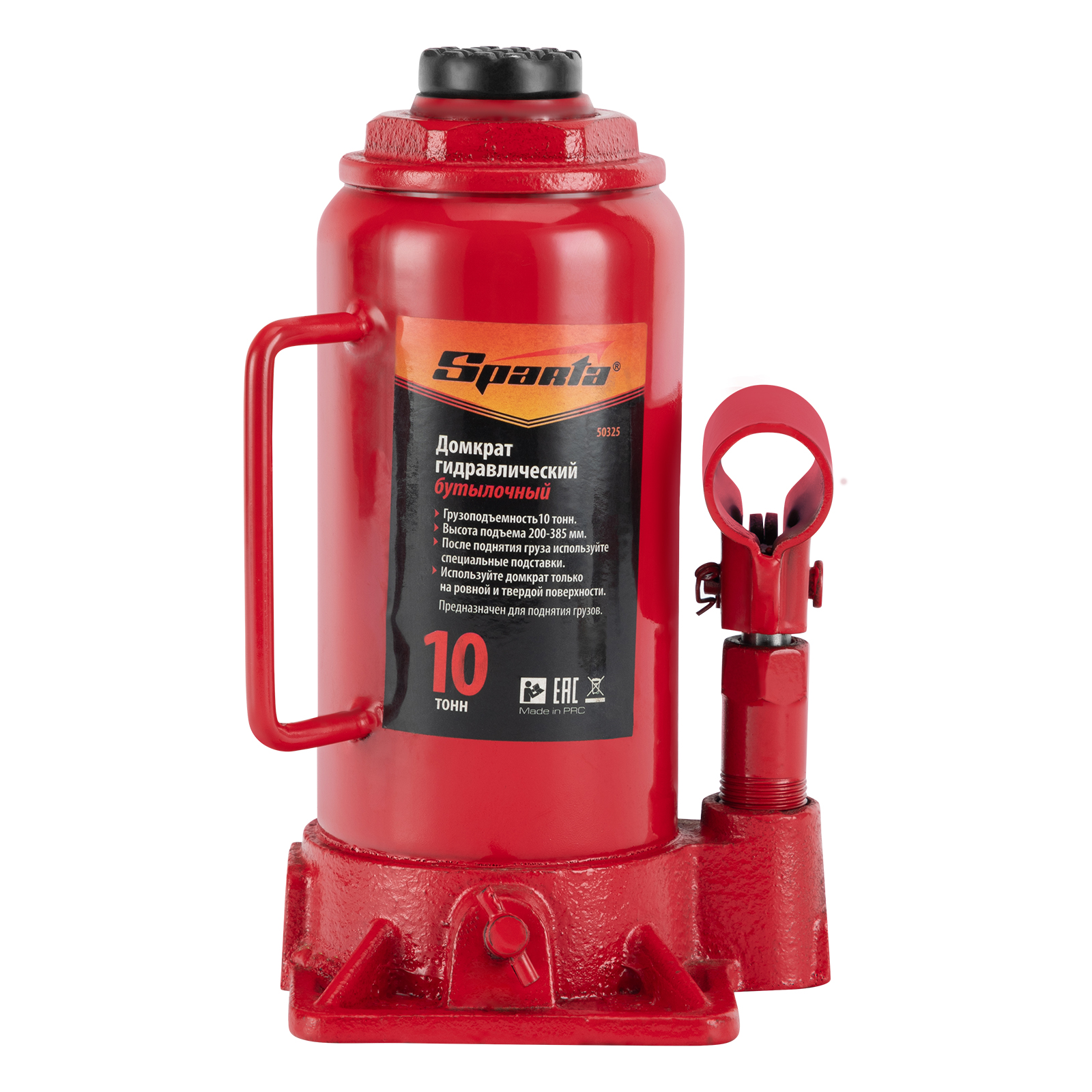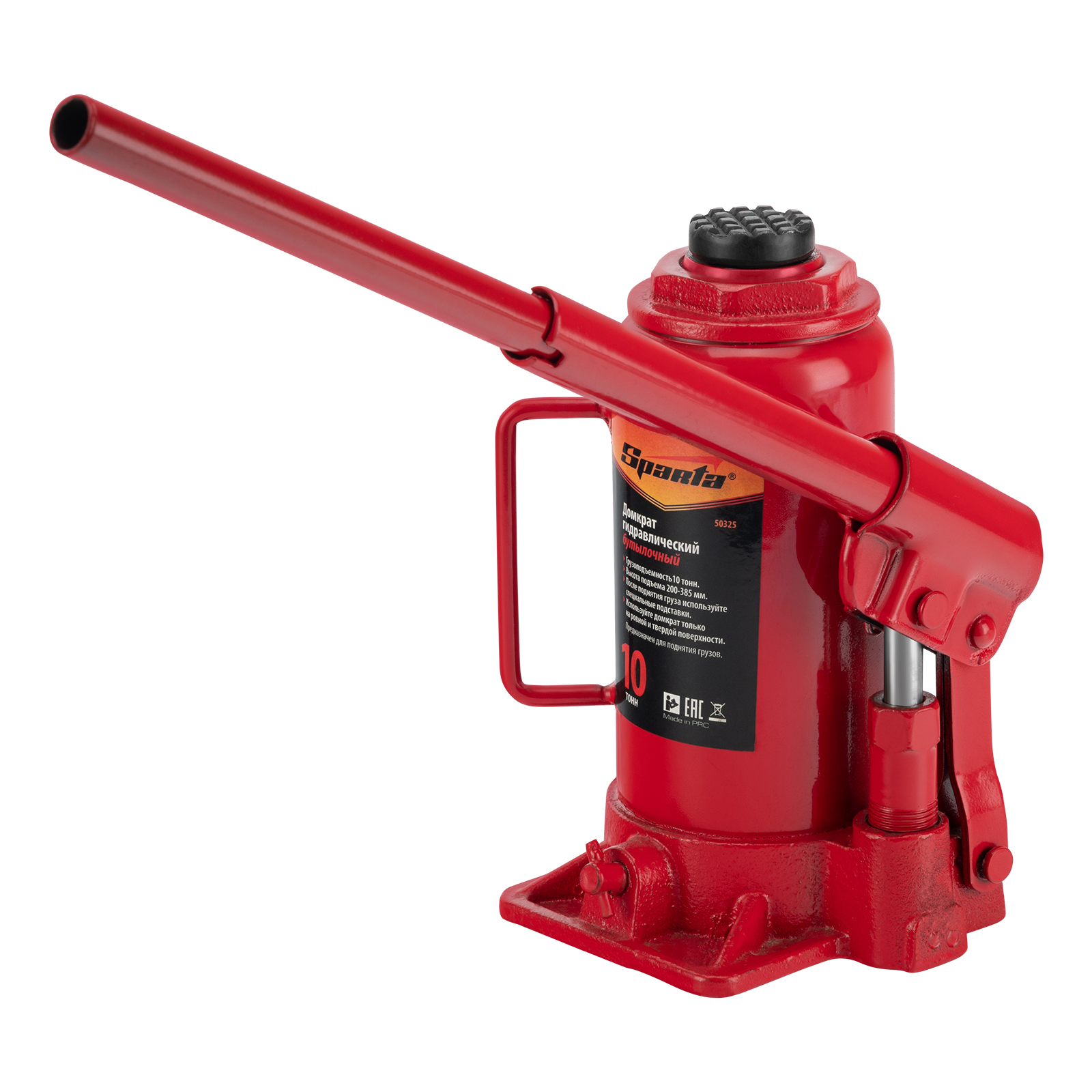 Гидравлический бутылочный домкрат Sparta 50325 рассчитан на подъем грузов весом до 10 т на высоту от 200 до 385 мм. Он пригодится как автолюбителям в гараже, так и профессиональным мастерам в автосервисах. Домкрат обеспечивает плавный подъем груза без особых усилий со стороны пользователя.