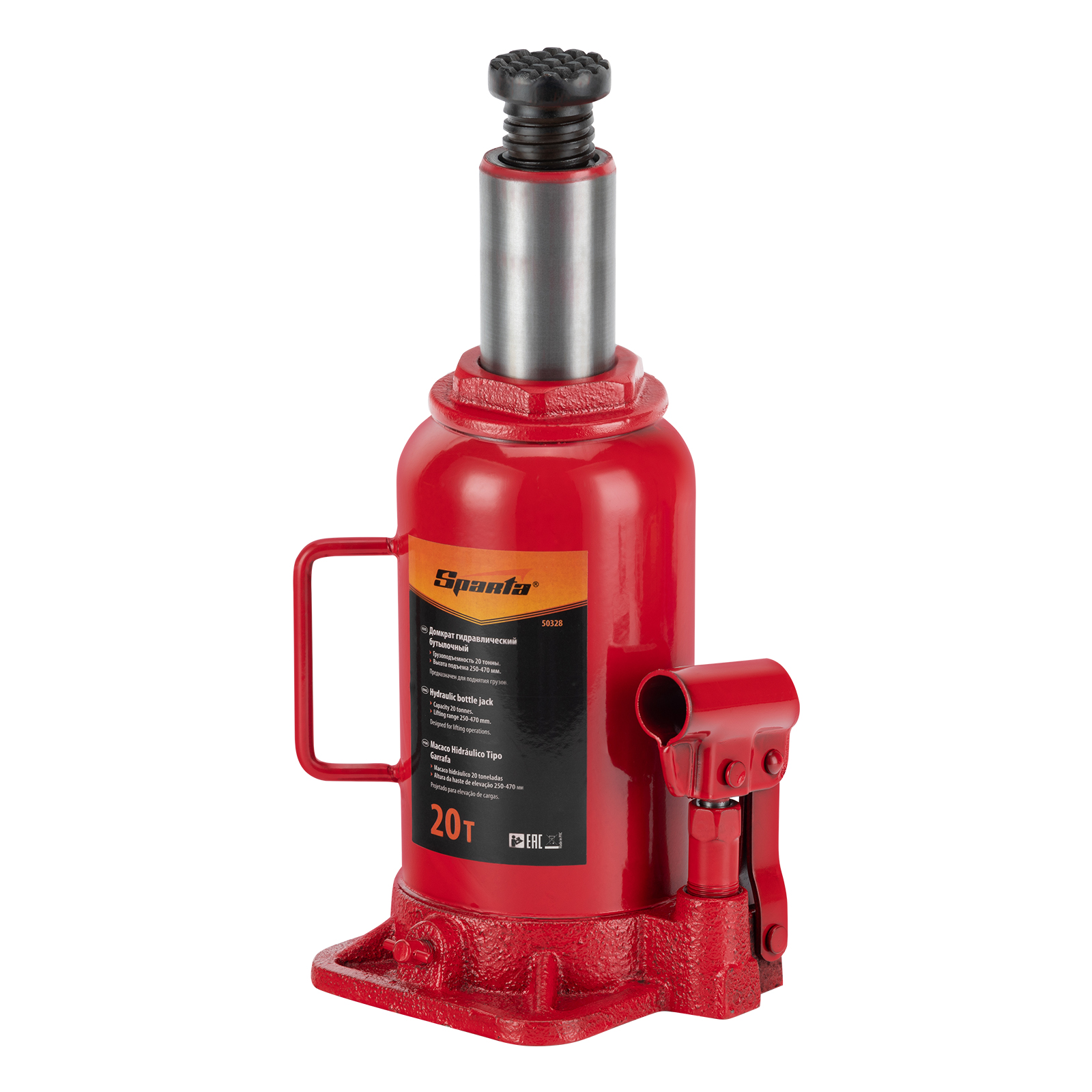 Домкрат гидравлический бутылочный, 10 т, h подъема 200-385 мм Sparta в Краснодаре