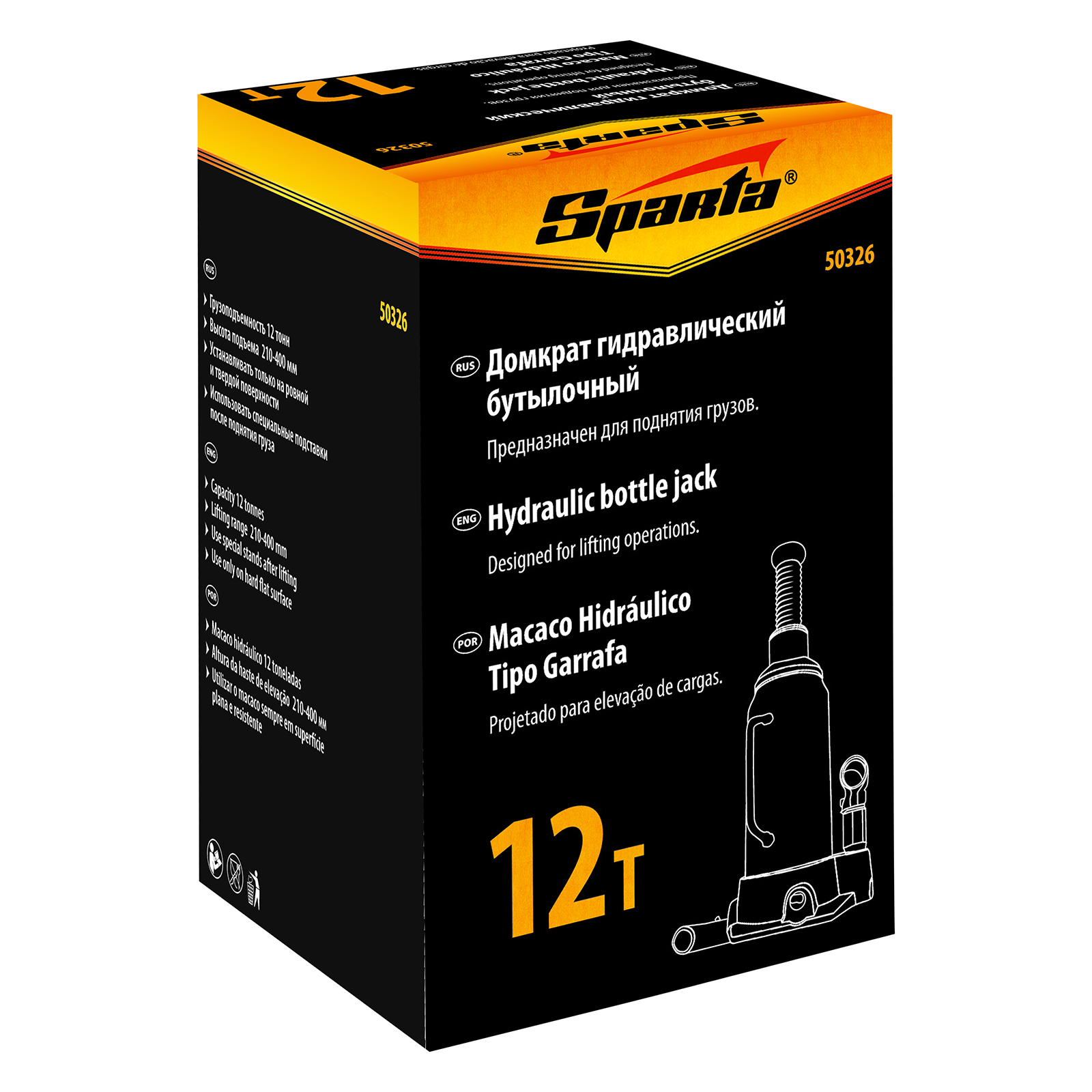 Гидравлический бутылочный домкрат Sparta 50326 рассчитан на подъем грузов весом до 12 т на высоту от 210 до 400 мм. Он пригодится как автолюбителям в гараже, так и профессиональным мастерам в автосервисах. Домкрат обеспечивает плавный подъем груза без особых усилий со стороны пользователя.