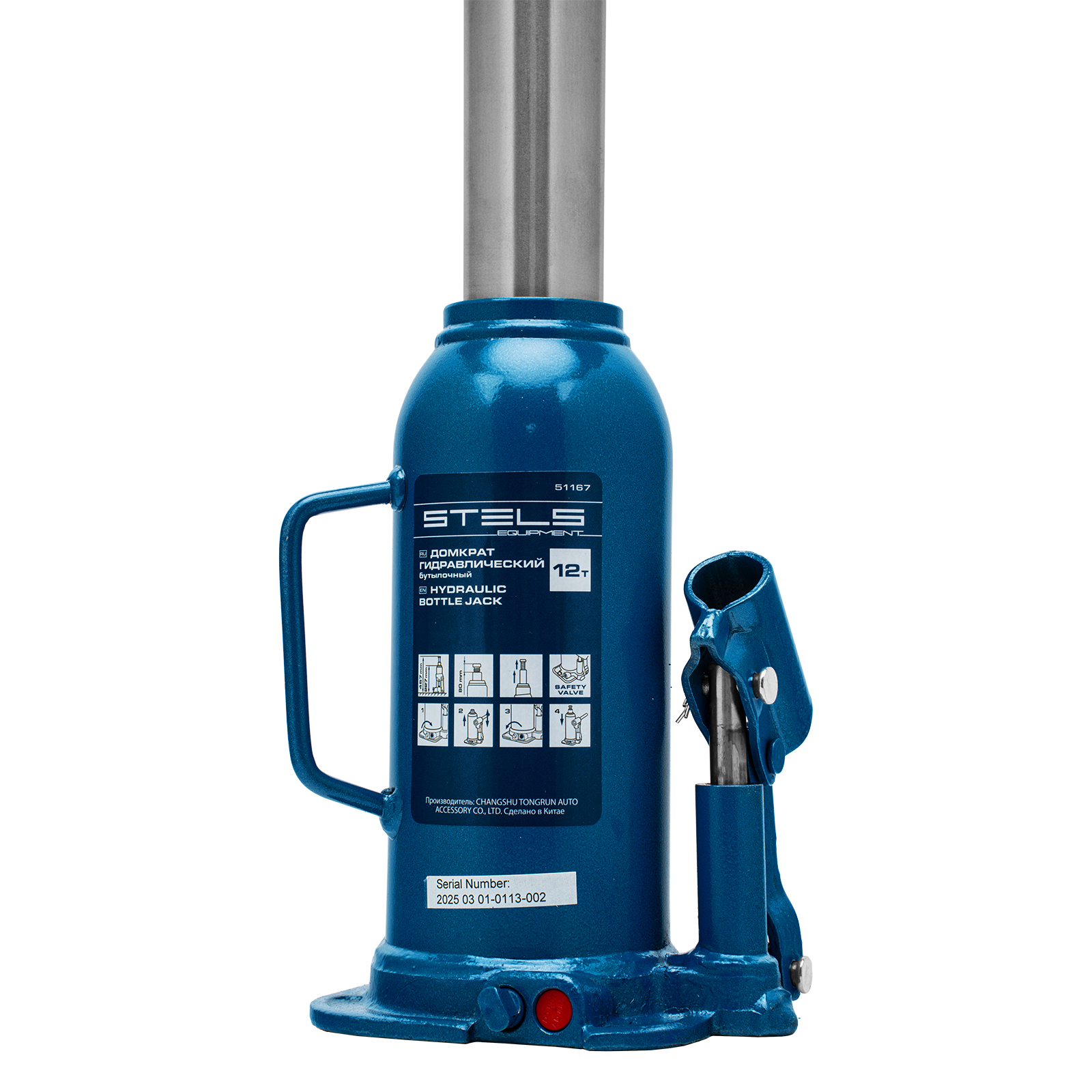 Гидравлический бутылочный домкрат Stels 51167 применяется для быстрого поднятия грузов весом до 12 т на высоту 227-457 мм. Оптимален для автомобилей с большим клиренсом. Домкрат будет полезен автолюбителям и профессионалам для ремонта транспортного средства.