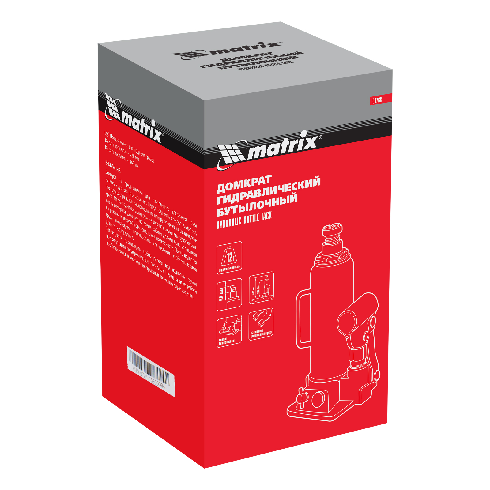 Домкрат гидравлический бутылочный, 12 т, h подъема 230-465 мм Matrix в Краснодаре