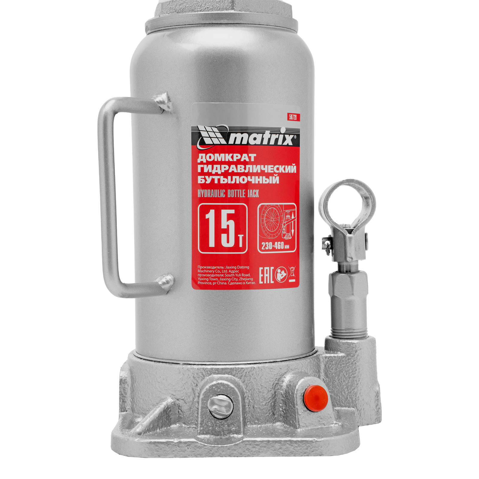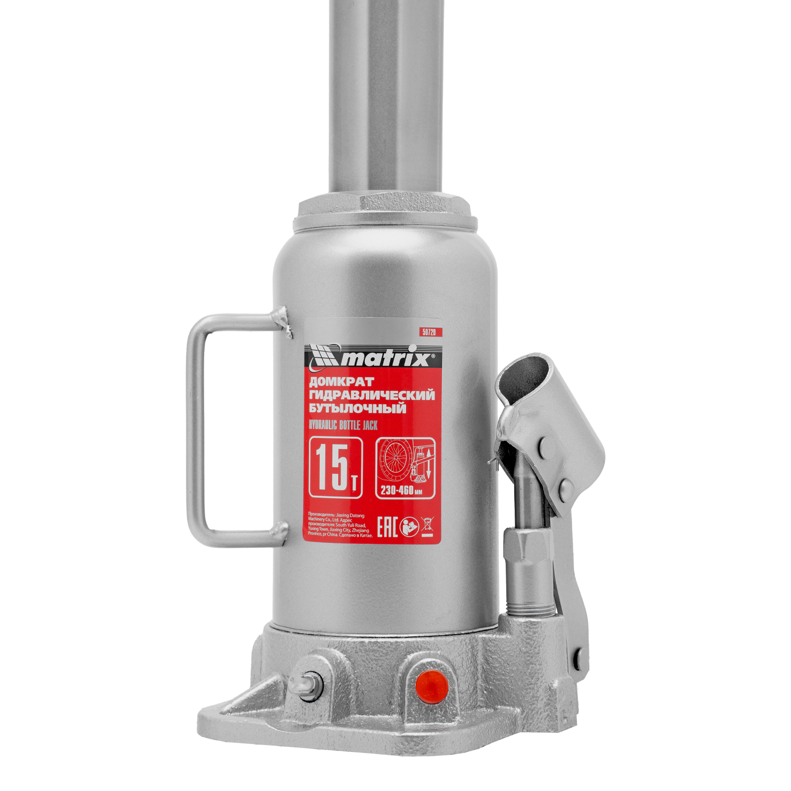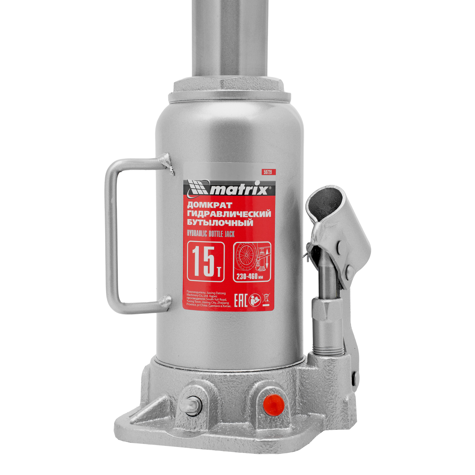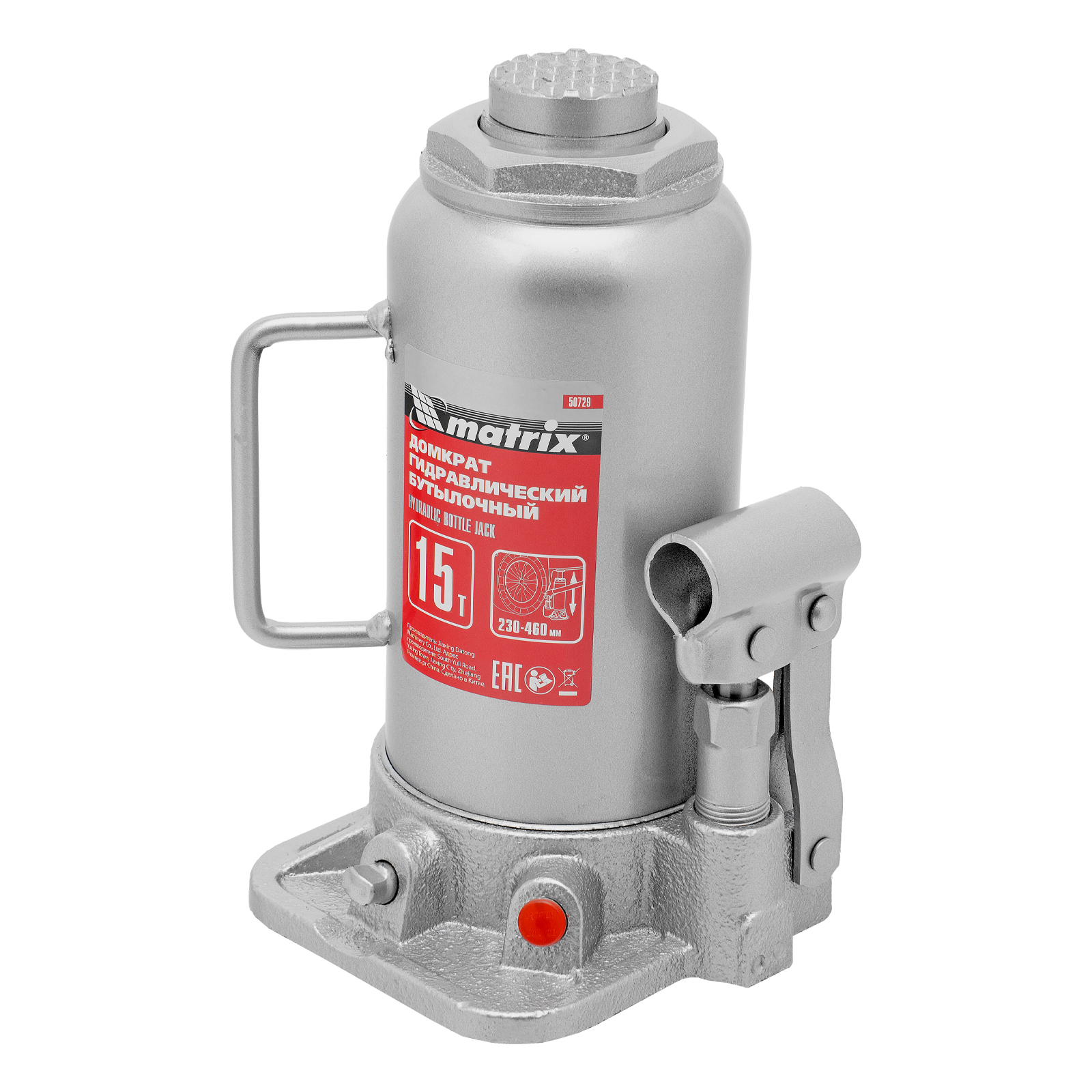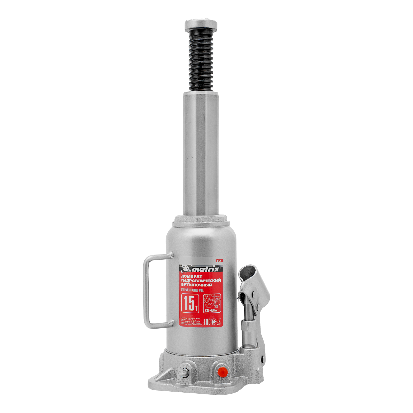 Домкрат гидравлический бутылочный, 15 т, высота подъема 230-460 мм Matrix в Краснодаре